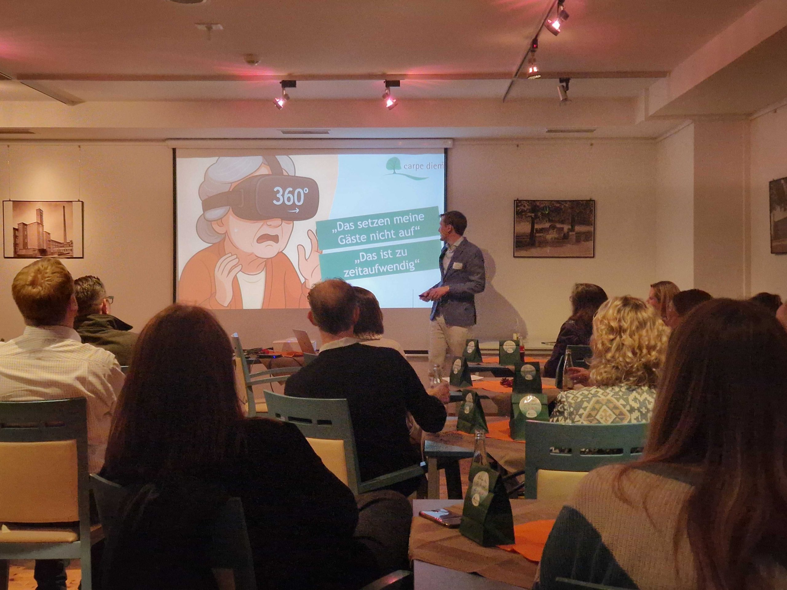 Ein Highlight des Abends war der Vortrag von IT-Leiter und Prokurist Marc Urban, der anschaulich zeigte, wie KI in der Pflege schon heute sinnvoll eingesetzt werden kann – und welche Potenziale noch darauf warten, genutzt zu werden. Seine Praxisbeispiele inspirierten und regten zum Weiterdenken an.