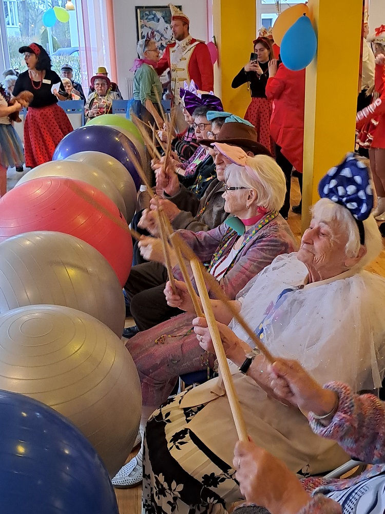 Unser Bewohnerchor brachte mit einer ganz besonderen Einlage den Saal zum Beben: Mit Gymnastikbällen trommelten die Chormitglieder im Takt eines Rock ’n’ Roll-Songs und sorgten für einen mitreißenden Auftritt.