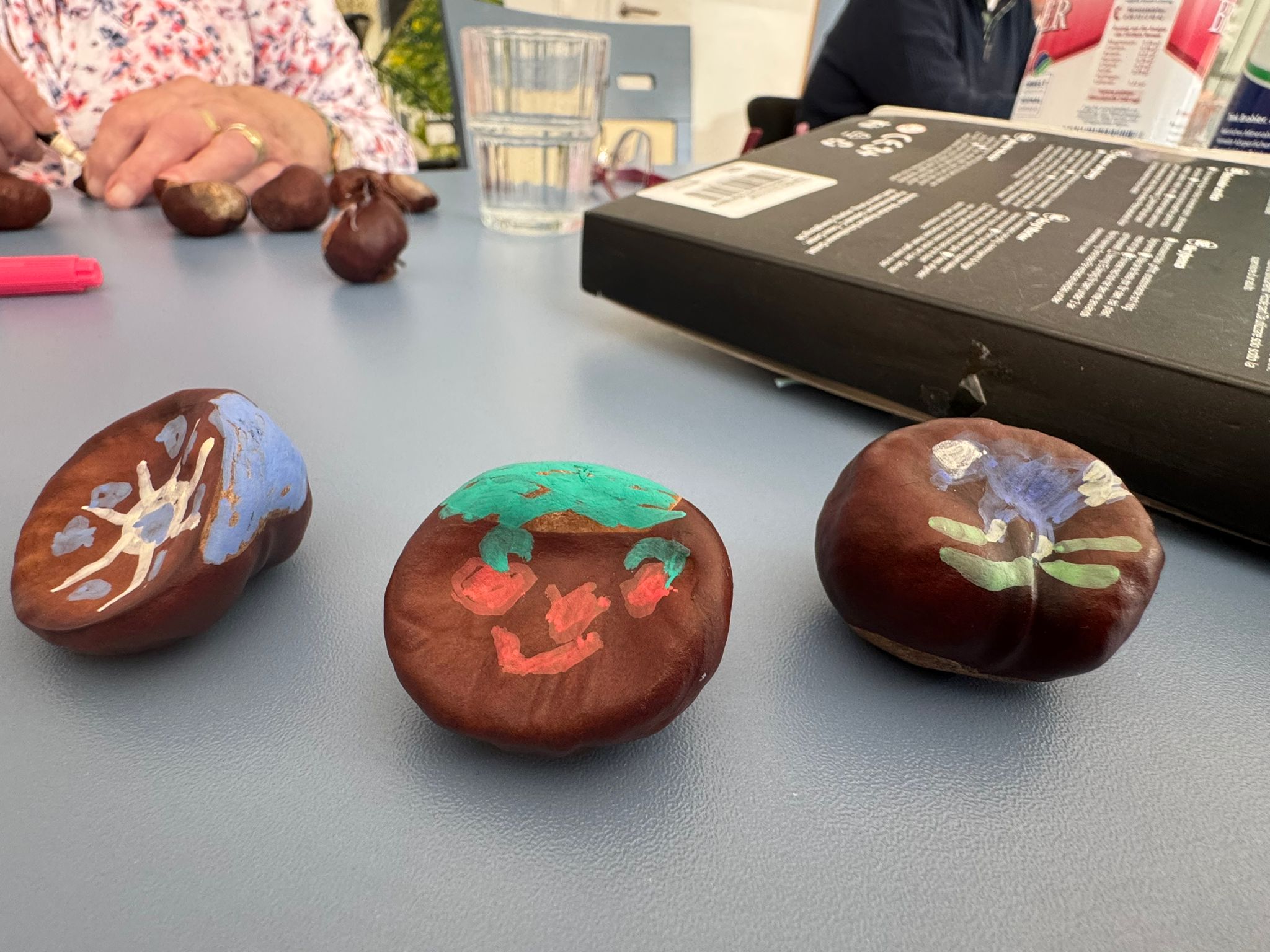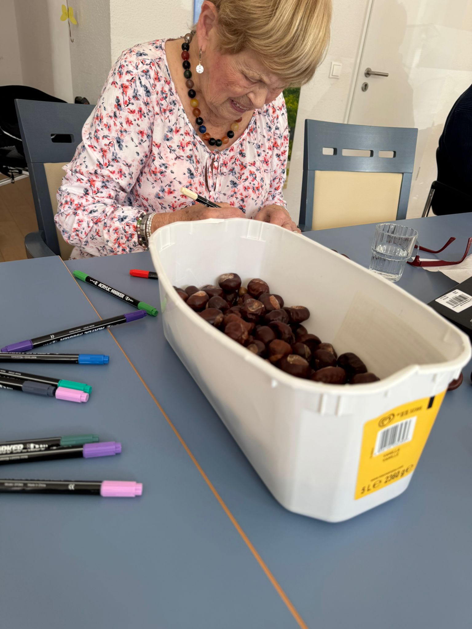 Heute haben unsere Gäste zum Thema Herbst das erste Bastelangebot angefangen. Aus unseren Kastanien wurden schöne Tiere und bunte Kunstwerke erstellt. Die Gäste hatten jede Menge Spaß und gute Laune.