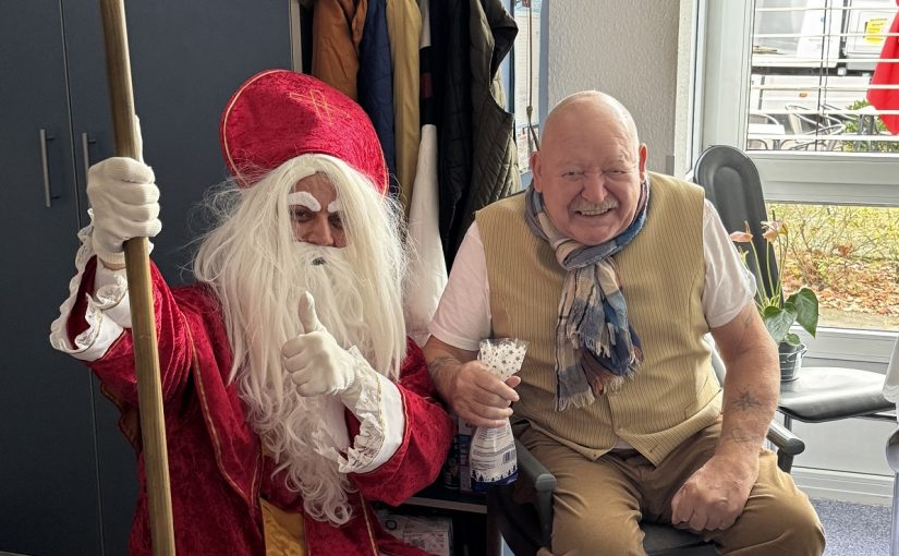 Im Senioren-Park carpe diem Aachen ist es Tradition, dass die Bewohner*innen Besuch vom Nikolaus erhalten. Ein Mitarbeiter schlüpft hierfür in die Rolle des Nikolauses, zieht das traditionelle rote Gewand an, setzt die Mitra auf und besucht die Bewohner*innen auf den Wohnbereichen.