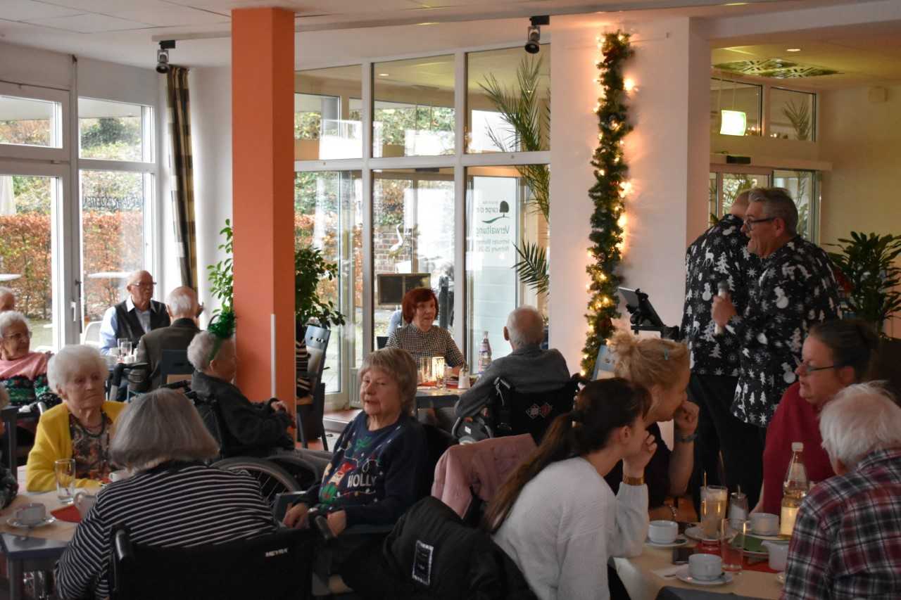 Am 11.12.24 war es dann soweit und es hieß „gemeinsame Weihnachtsfeier“! Für viele Bewohner*innen ist die Weihnachtsfeier eines der Highlights des Jahres. In dieser besinnlichen Zeit des Jahres wird nicht nur die festliche Stimmung gefeiert, sondern auch das Gefühl der Gemeinschaft gestärkt. Es ist eine Gelegenheit, den Alltagsstress hinter sich zu lassen und sich auf die besonderen Momente zu konzentrieren, die diese Jahreszeit mit sich bringt. Es wird gemeinsam gefeiert, gesungen und vor allem gelacht. Dieses Jahr gab es ganz besondere Weihnachtsmusik. Zu Besuch kam eine Gesanggruppe, welche Live-Musik spielte. Hierbei handelte es sich um klassische und moderne Weihnachtsstücke, welche zum Teil neu vertont waren. So wurden die Lieder ins Oecher-Platt umgetextet.