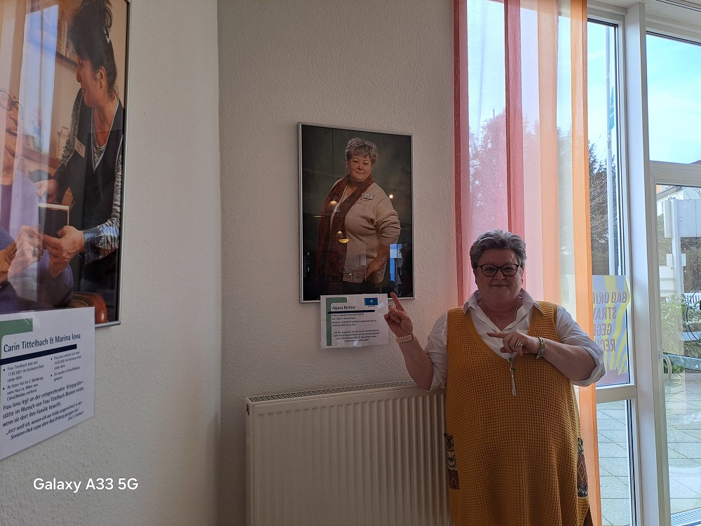 Die talentierte Fotografin Frau Jekaterina Knyasewa von JKPhoto&Werbung hat uns bei diesem Projekt unterstützt. Sie hat sowohl Einzelporträts einiger internationaler Mitarbeitenden als auch ein Gruppenfoto eines Wohnbereichs erstellt und in großem Format drucken lassen. Diese Bilder sind nun in unserem Café-Restaurant ausgestellt.
