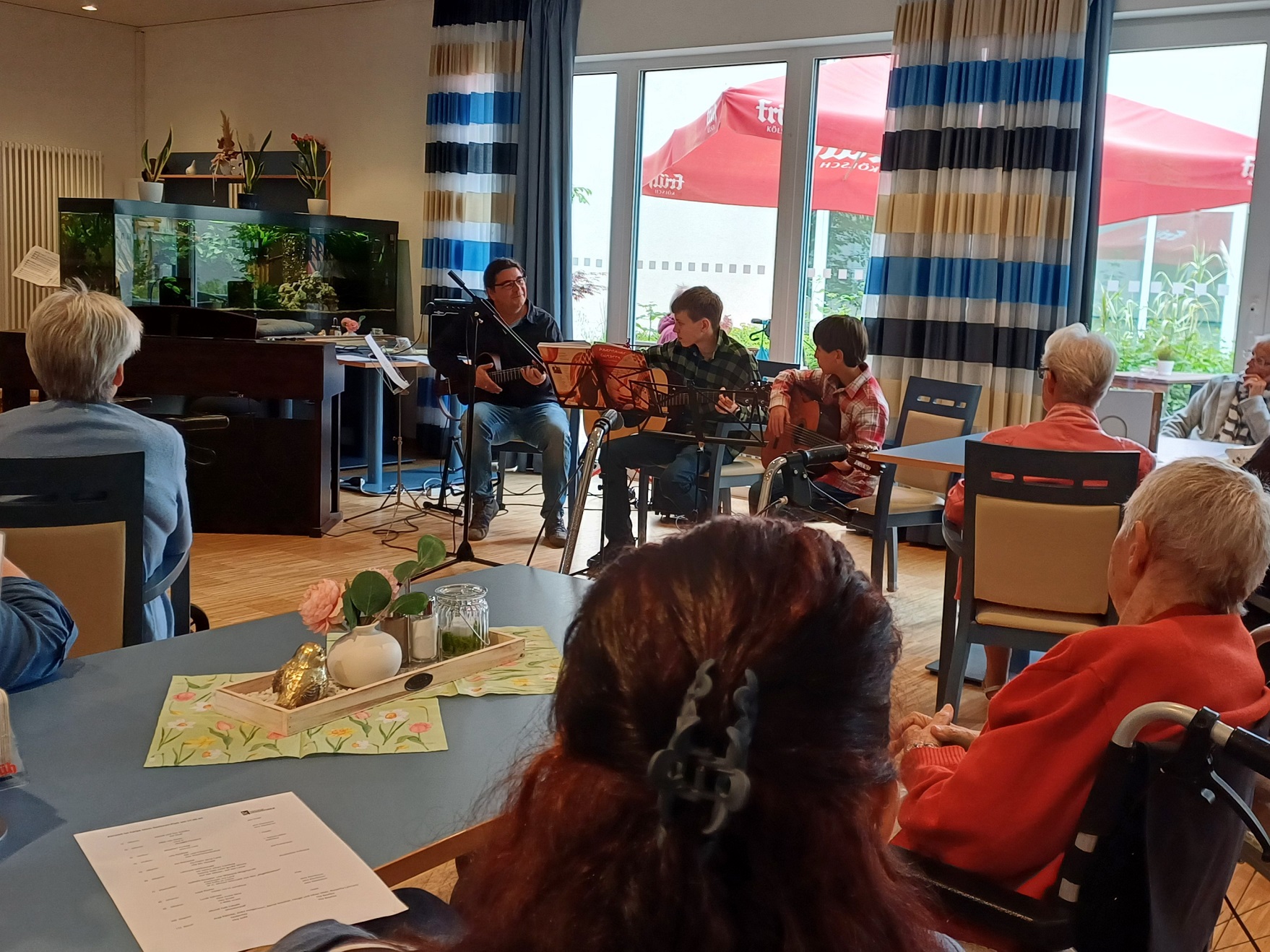 Bei schönem Wetter trafen sich unsere Bewohner*innen zu einer kleinen Singrunde im Garten – begleitet von Gitarre und guter Laune.