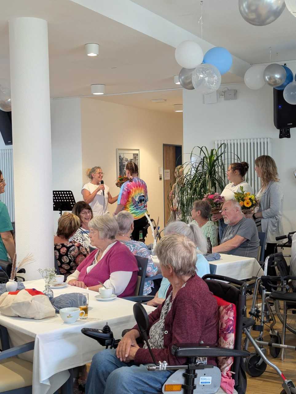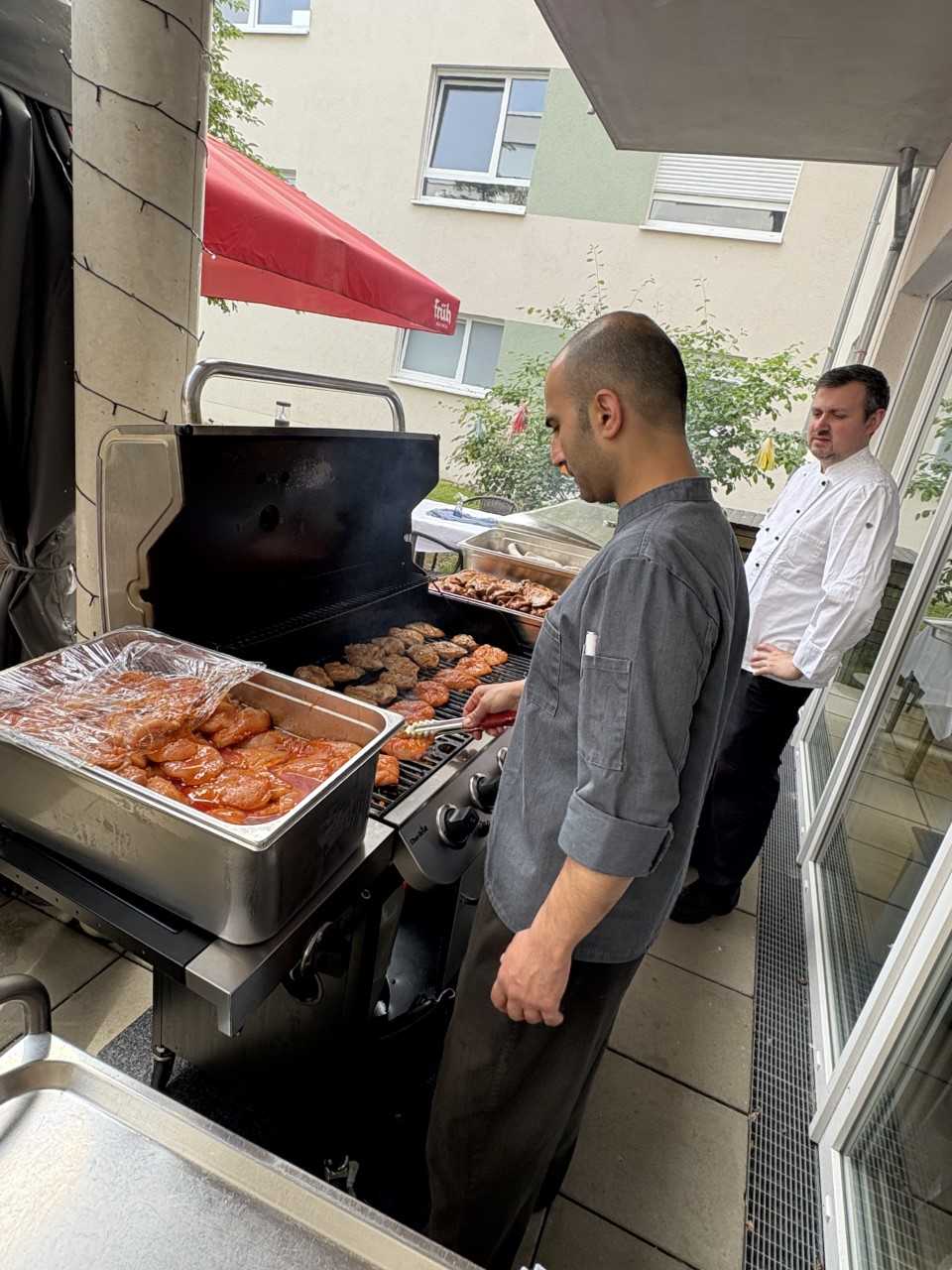 Der Tag startete mit einem gemütlichen Mitarbeiterfrühstück, bevor am Nachmittag der Grill angeschmissen wurde. Bei leckerem Essen und Sonnenschein kamen alle Kolleg*innen, Bewohner*innen und Angehörige zusammen. Ein Höhepunkt war die Rede unserer Einrichtungsleitung, die besonders den Mitarbeitenden dankte, die von Anfang an dabei sind – ein Moment voller Wertschätzung und Zusammenhalt.