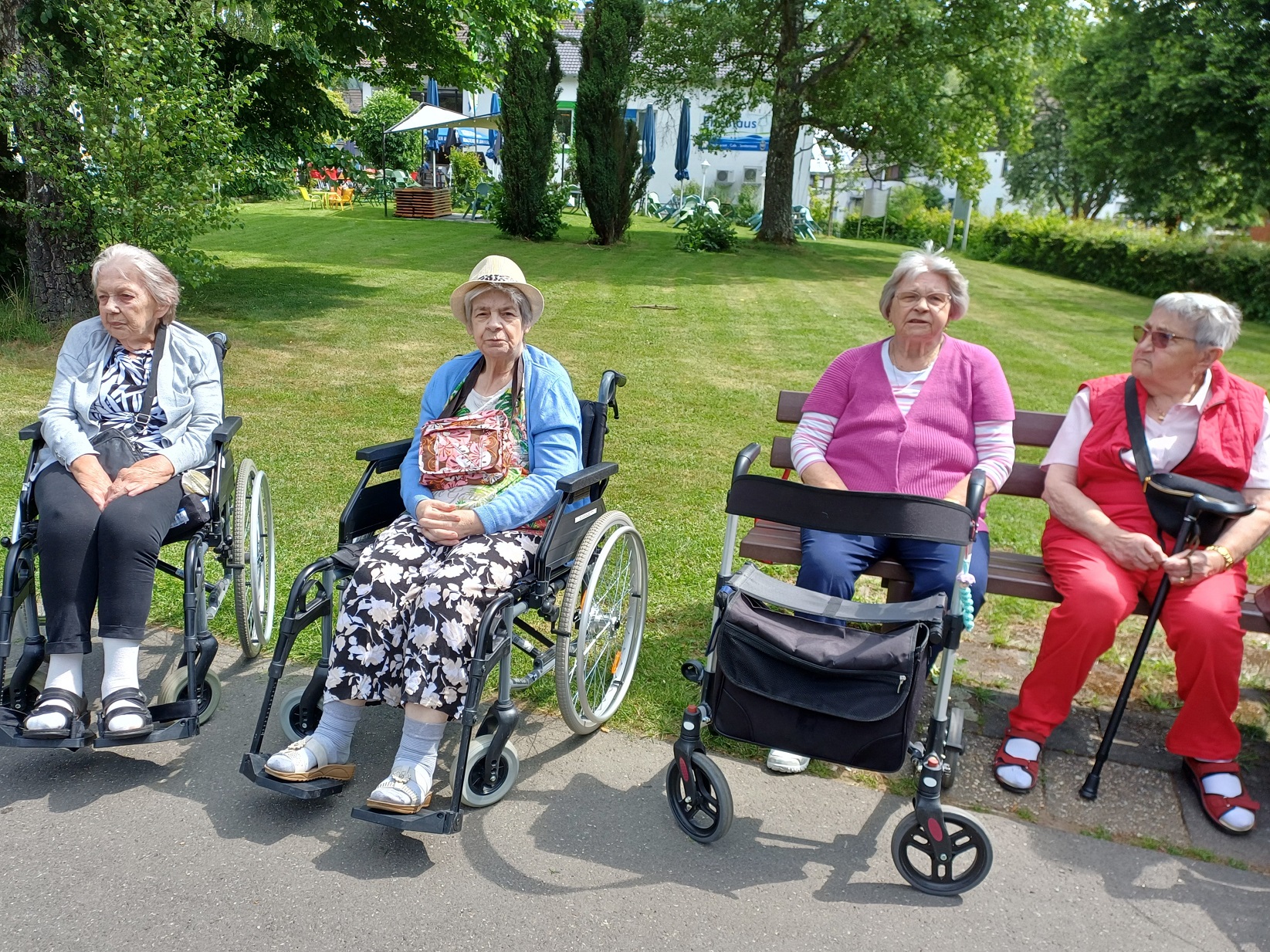 Unsere Bewohner*innen genossen das herrliche Wetter mit fröhlichen Anekdoten und gemeinsamen Gesang!