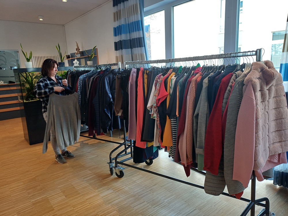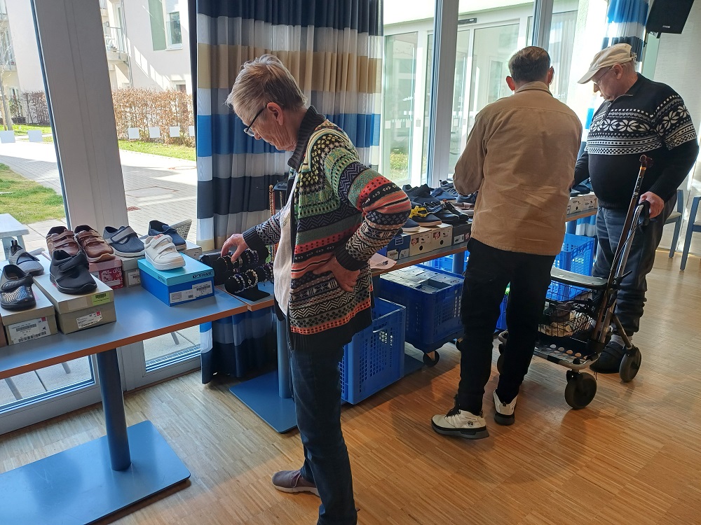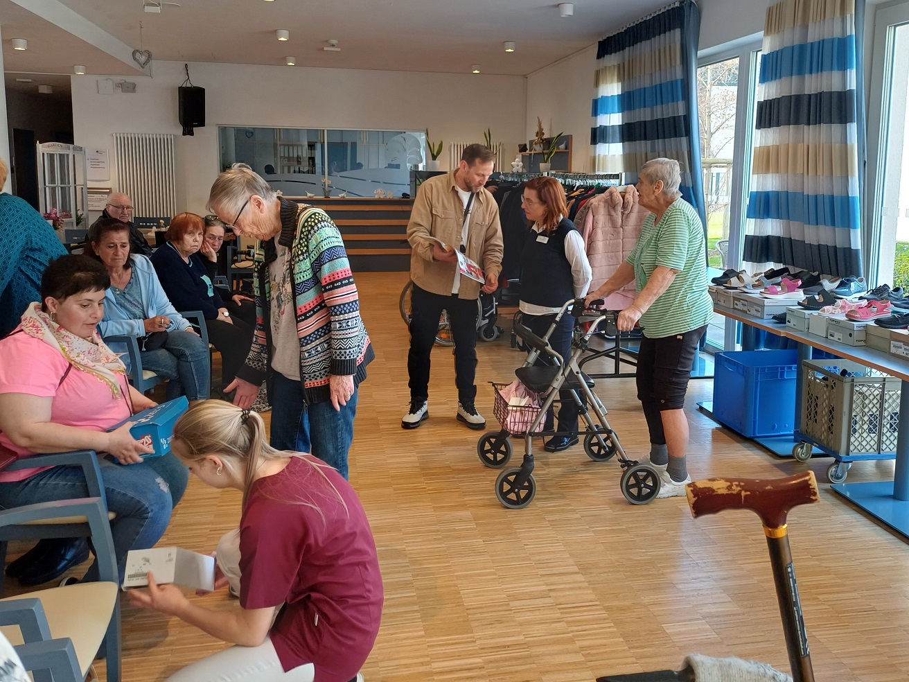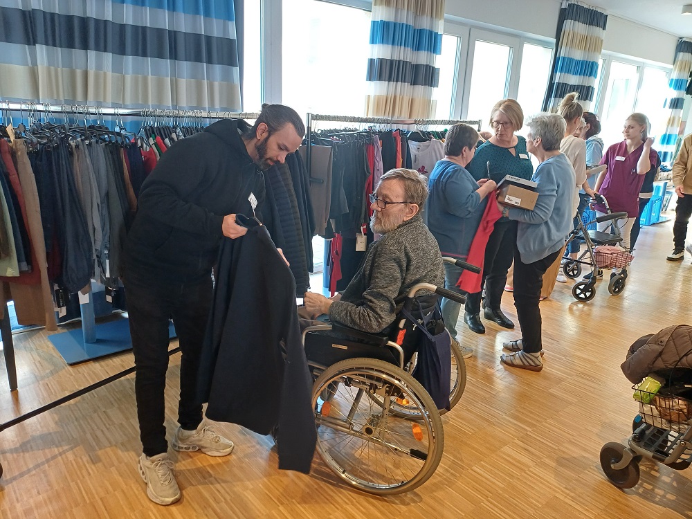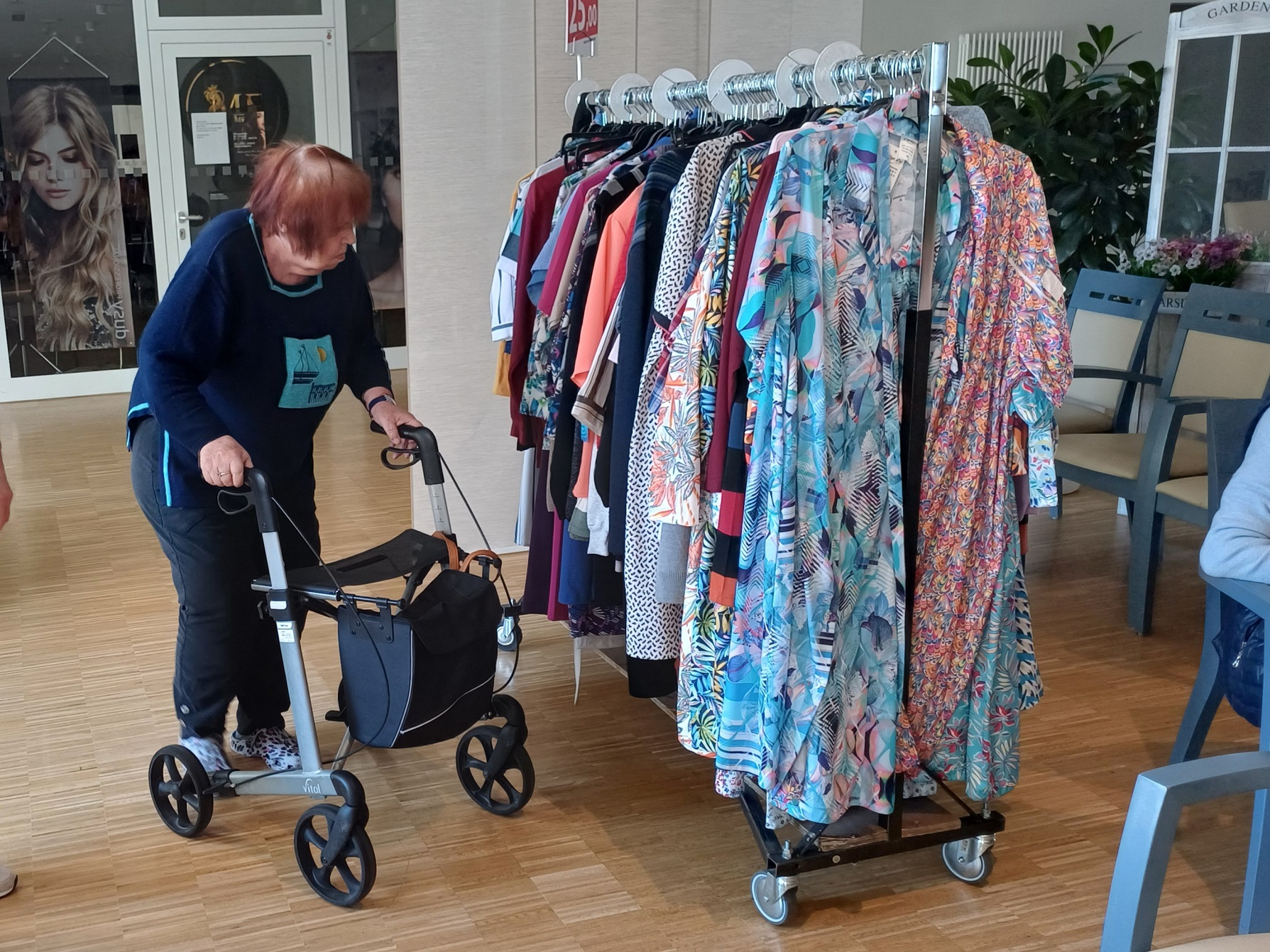 Am Dienstagnachmittag begrüßten wir das Modehaus L’age d’or in unserer Einrichtung in Düren. Hier konnten die Bewohner*innen aus einem großen Sortiment von Damen- und Herrenmode über Schuhe, Unter- und Nachtwäsche bis zu Schmuck und Parfüm wählen. Das Angebot wird gerne angenommen. Viele freuen sich über die Abwechslung und Möglichkeit zu bummeln, ohne das Haus verlassen zu müssen.