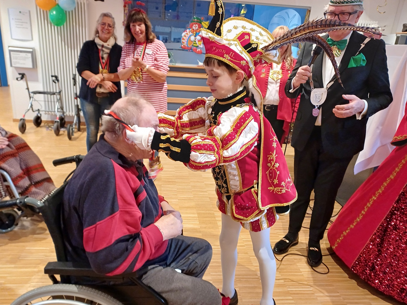 Als krönenden Abschluss durften wir das Prinzenpaar mit Kinderprinz inklusive Festkomitee der Stadt Düren bei uns begrüßen. Es wurden der älteste Bewohner und die jüngste Bewohnerin mit einem Orden geehrt, außerdem gaben sie ihr Sessionslied zum Besten.