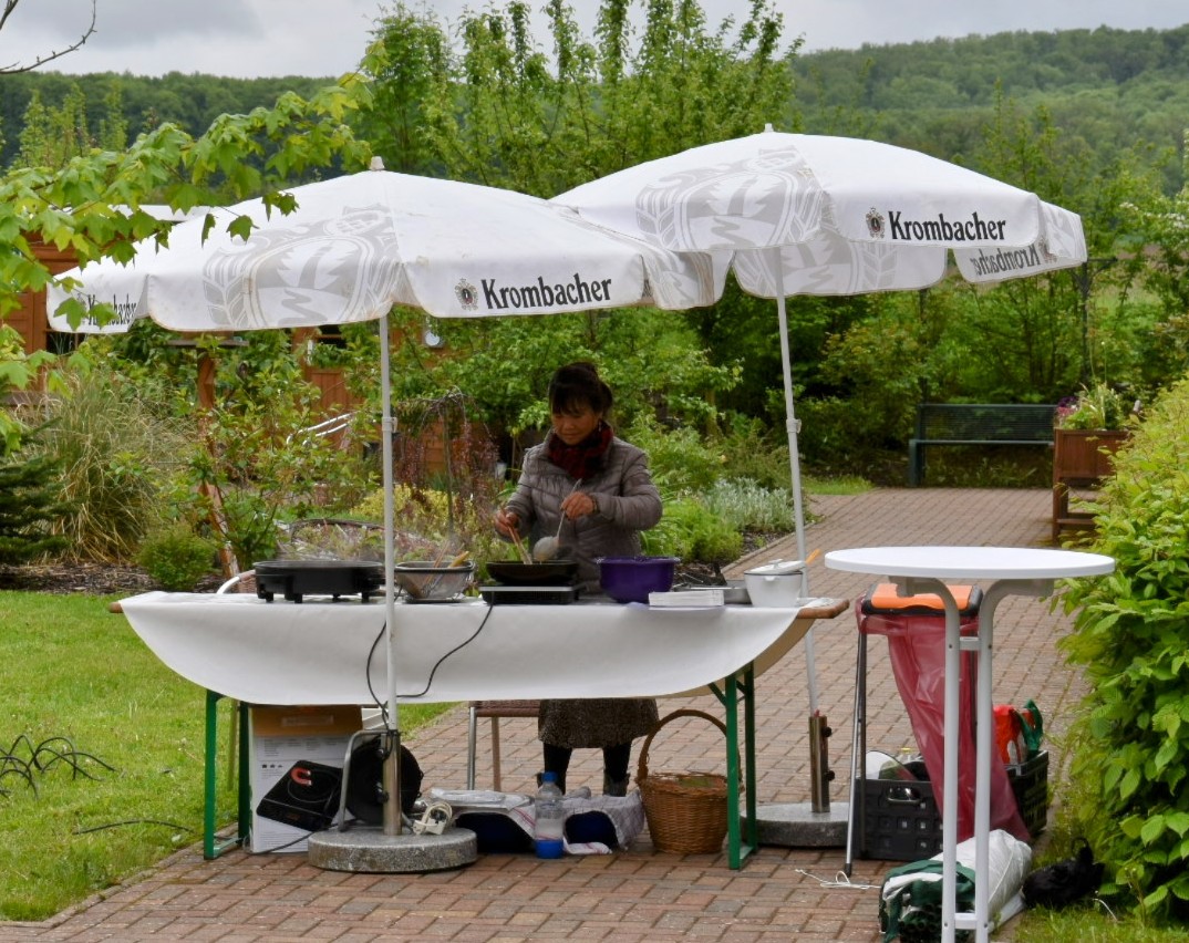 Das Speisenangebot variierte von klassischer Brat- und Currywurst, über vietnamesische Frühlingsrollen und Gemüsebratlingen, hin zu frischgebackenen Waffeln und dem vielfältigen Kuchen- und Tortenangebot des „Vier Jahreszeiten“… mit den entsprechenden Getränken war so für jeden Geschmack etwas dabei.
