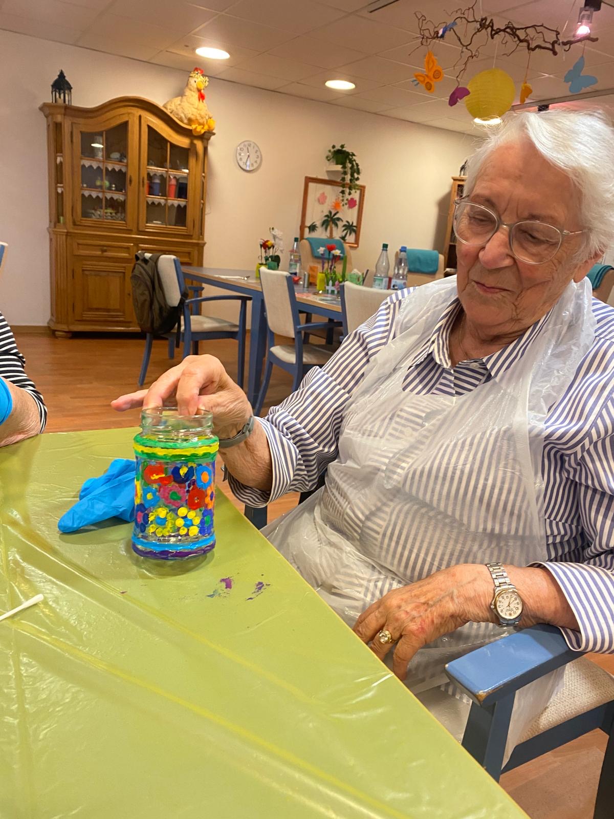 Danach wurde viel gelacht und sogar ein kleines „Turnprogramm“ gestartet: Die beiden Mädchen spielten Zirkus, wirbelten mit dem Hula-Hoop und zeigten voller Stolz ihre Kunststücke. Unsere Gäste waren begeistert und man sah, wie das Zusammensein von Jung und Alt beiden Seiten Freude schenkt.