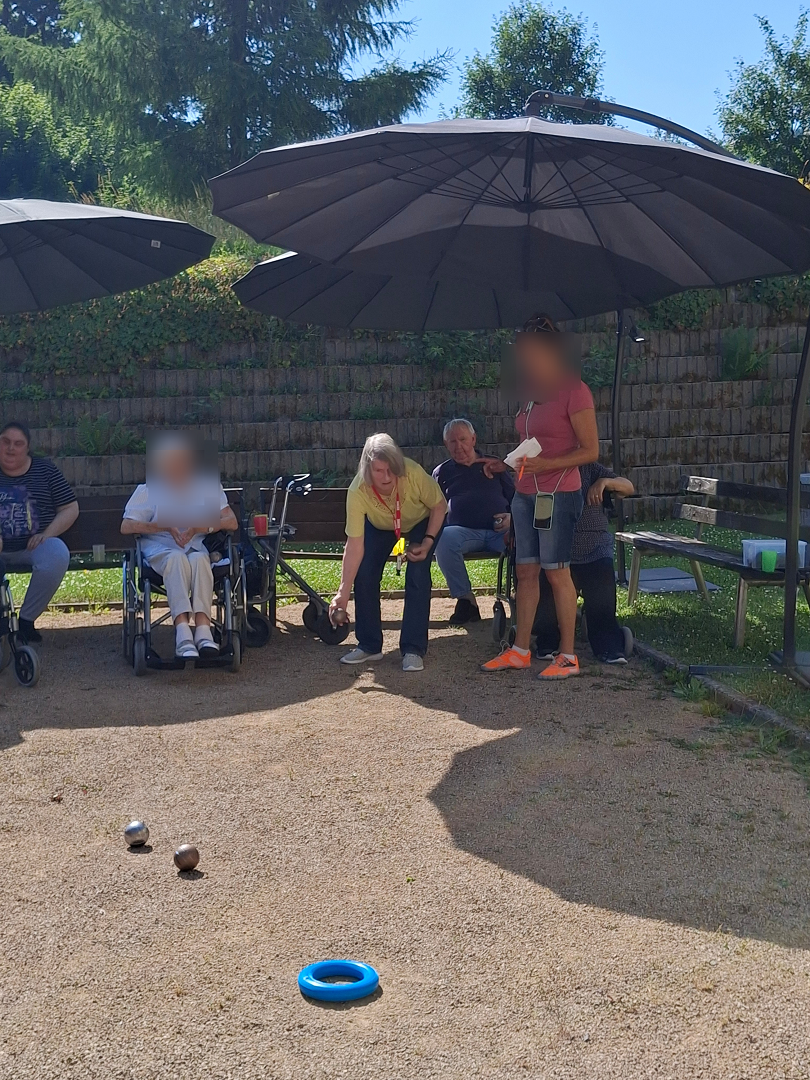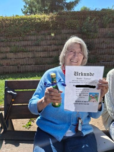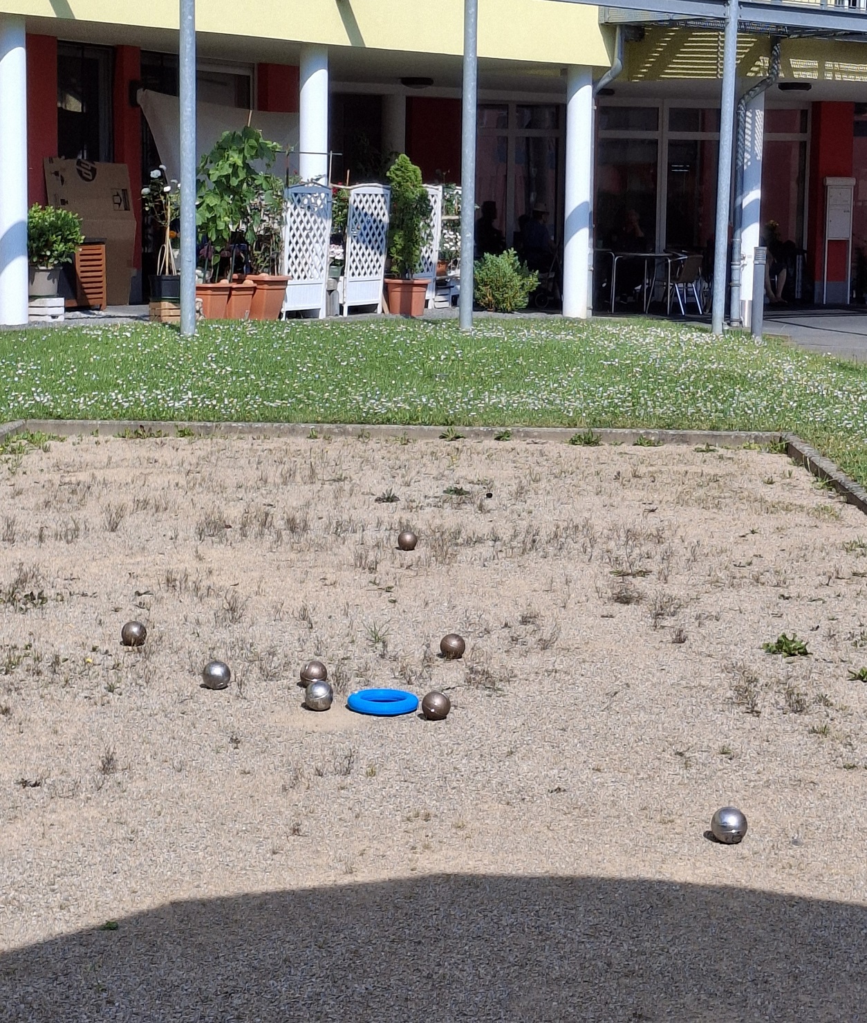 In der vergangenen Woche fand an drei Tagen im carpe diem Hellenthal unser diesjähriges Boule-Turnier statt. Die jeweiligen Wohnbereiche spielten einen Sieger aus. Am letzten Tag spielten die Besten noch um die ersten Plätze. Die Teilnehmer*innen hatten ihre Freude daran, und am Ende gab es für jeden Teilnehmer eine Urkunde. Die Sieger bekamen zusätzlich einen kleinen Preis.