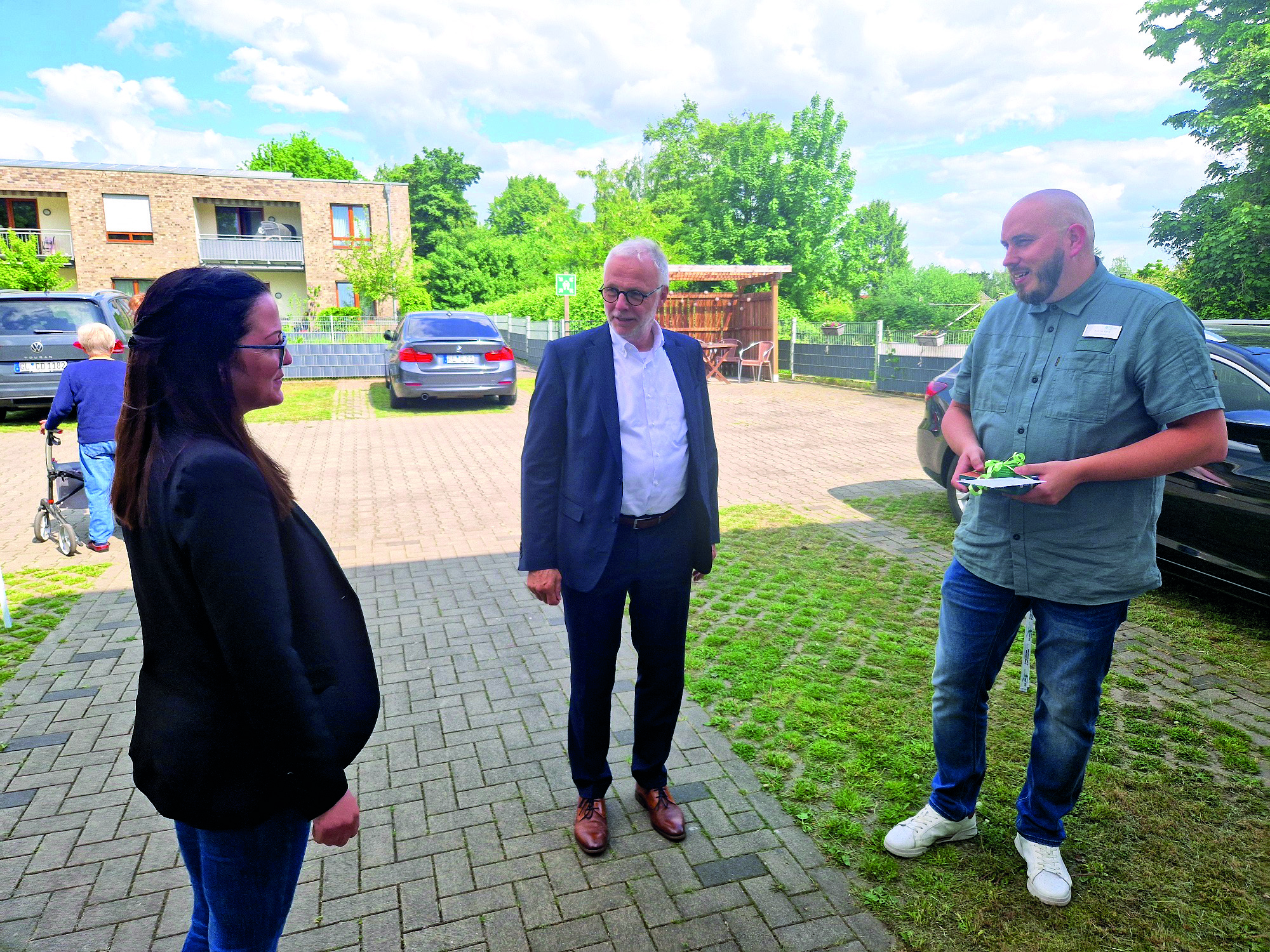 Für Herten und Umgebung trägt das zusätzliche Angebot einer Kurzzeitpflege zur Lebensqualität von pflegebedürftigen und pflegenden Personen bei. Dass Bedarf besteht, zeigte sich beim Tag der offenen Tür Anfang Mai, bei dem sich Interessierte über die Möglichkeiten der Kurzzeitpflege informieren konnten. Neben den Interessenten stattete auch Hertens Bürgermeister Matthias Müller der Einrichtung einen Besuch ab und überreichte Geschenke zur bevorstehenden Neueröffnung an Einrichtungsleiterin Jaqueline Grande und Andreas Claus vom carpe diem Kompetenzteam. Gerade in Zeiten, in denen die Zahl der Pflegebedürftigen und Demenzerkrankten steigt, sei das Angebot ein Mehrwert für die Stadt. „Man kriegt ein Gefühl dafür, wo uns das hinführt. Es kommt noch viel auf uns zu“, sagte der Bürgermeister mit Blick in die Zukunft.