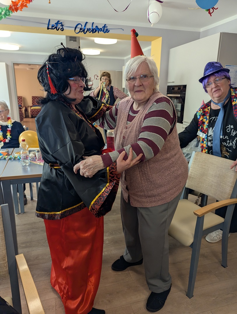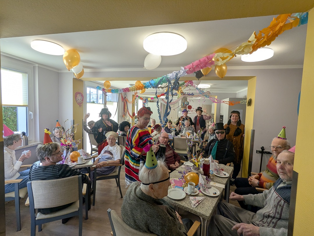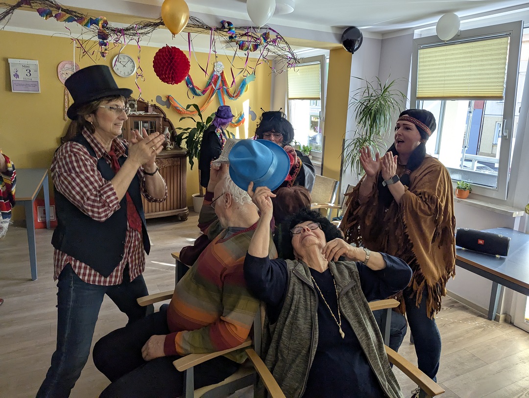 Am Montag ging es bunt bei uns zu. Pünktlich zum Rosenmontag wurde in der Tagespflege Ossietzkystraße die 5. Jahreszeit eingeläutet. Die Mitarbeiter begrüßten unsere Tagesgäste mit fantasievollen Kostümen und einem reichhaltigen Frühstücksangebot. Danach ging es zur Sache. Bei toller Musik und lustigen Spielen wurde dann bis zum Mittag ausgelassen gefeiert, Bowle und Knabbereien durften nicht fehlen. Alle hatten einen riesigen Spaß. Unsere Faschingsfeier sorgte für gute Laune und für ein unvergessliches Erlebnis.