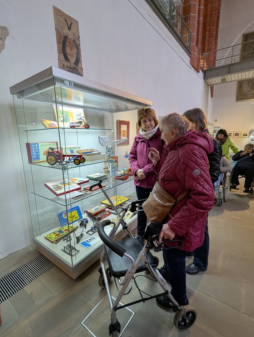 Heute ging es für unsere Tagesgäste der Ossietzkystraße zur Sonderausstellung ins Stadtmuseum. Hier konnte man die ganze Spielzeug-Geschichte der DDR bewundern. Die ausgestellten Exemplare wurden in verschiedenen Regionen des Landes hergestellt und von einem Privat-Sammler zusammengetragen und ausgestellt. Eine große Vielfalt an Spielsachen aus Metall und Plastik, Fahrzeuge, Figuren, Kreativ-Spielsachen, Metallbaukästen und elektromechanische Spiele fanden ihren Ausstellungsplatz. Unsere Tagesgäste waren begeistert und begannen sich gleich angeregt zu unterhalten, wie sie damals diese Zeit erlebt hatten. Es war ein sehr schöner und interessanter Vormittag.