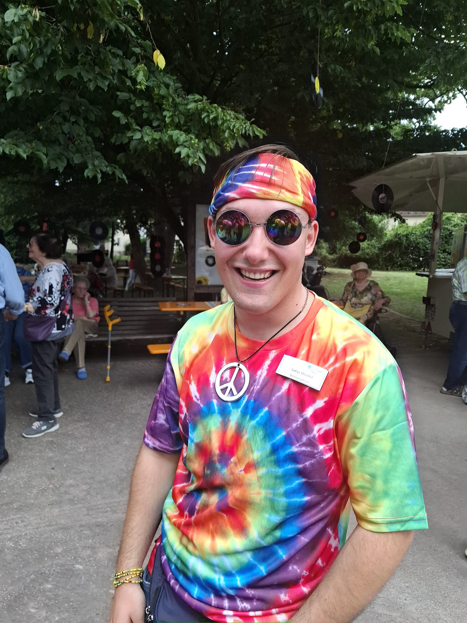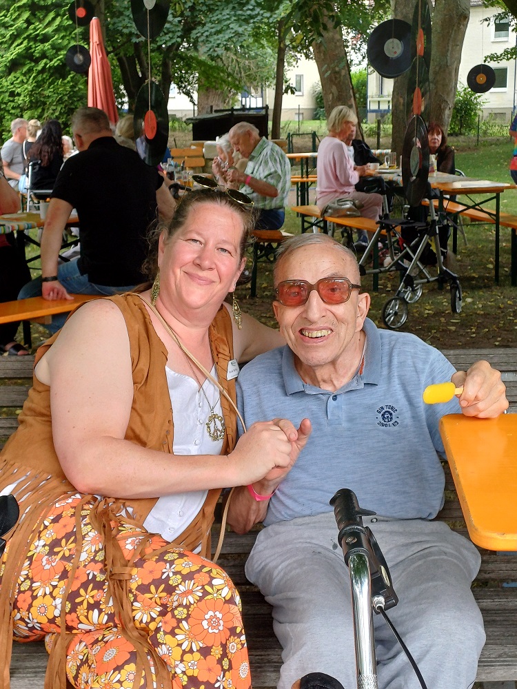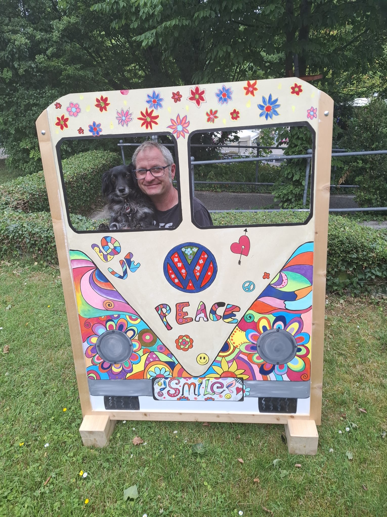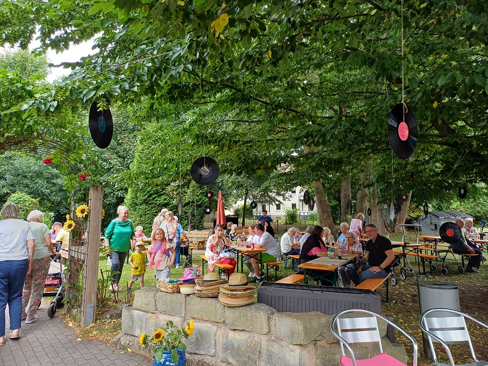 Die Mitarbeiter*innen der Betreuung hatte das Außengelände liebevoll mit typisch 70er-Jahre Motiven und zahlreichen Schallplatten dekoriert.