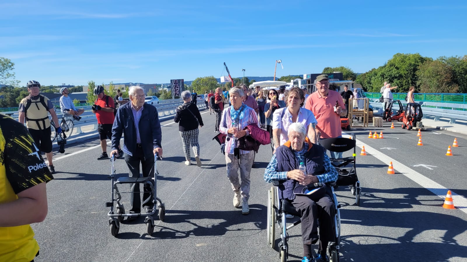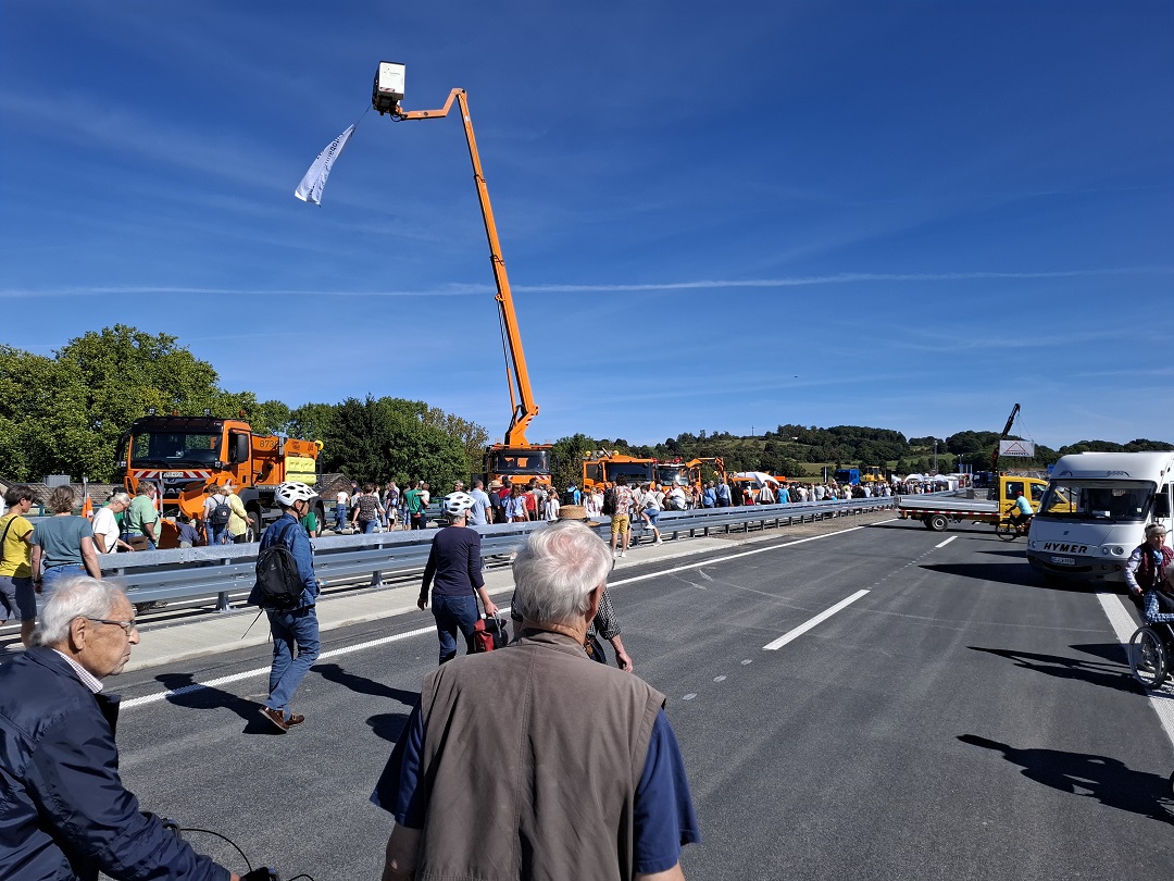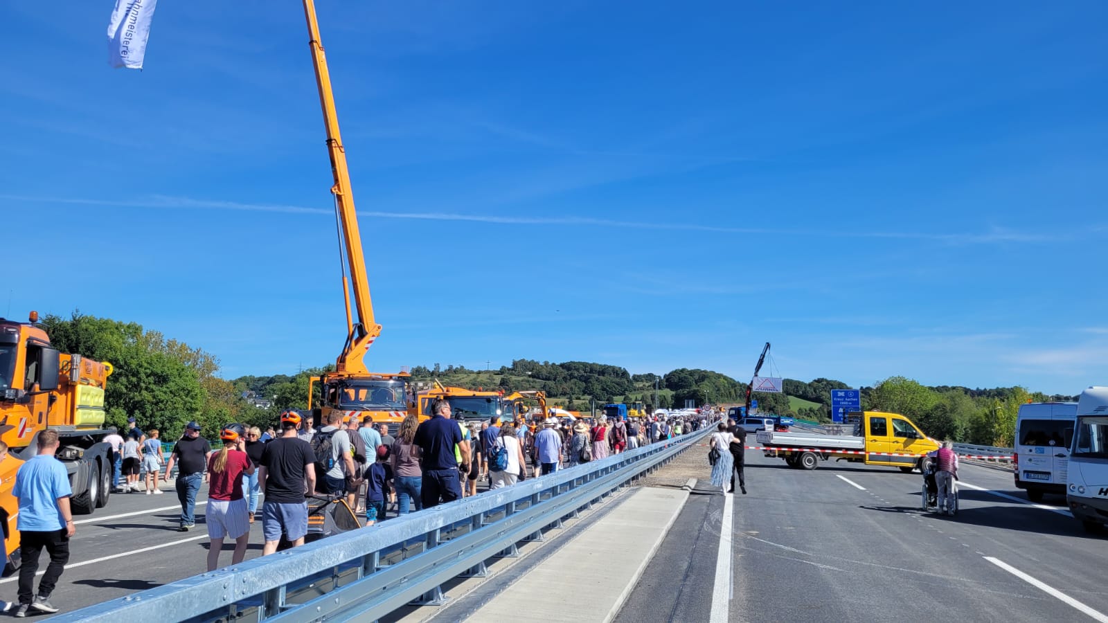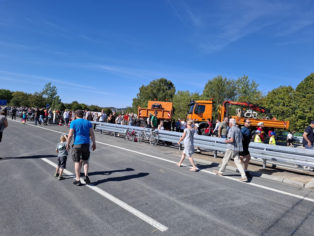 ebenfalls als Zuschauer anwesend. Was genau für einige Herren der Grund gewesen ist, der Neueröffnung der 157 Meter langen Brücke auf der A544, als Ausflug zu planen.