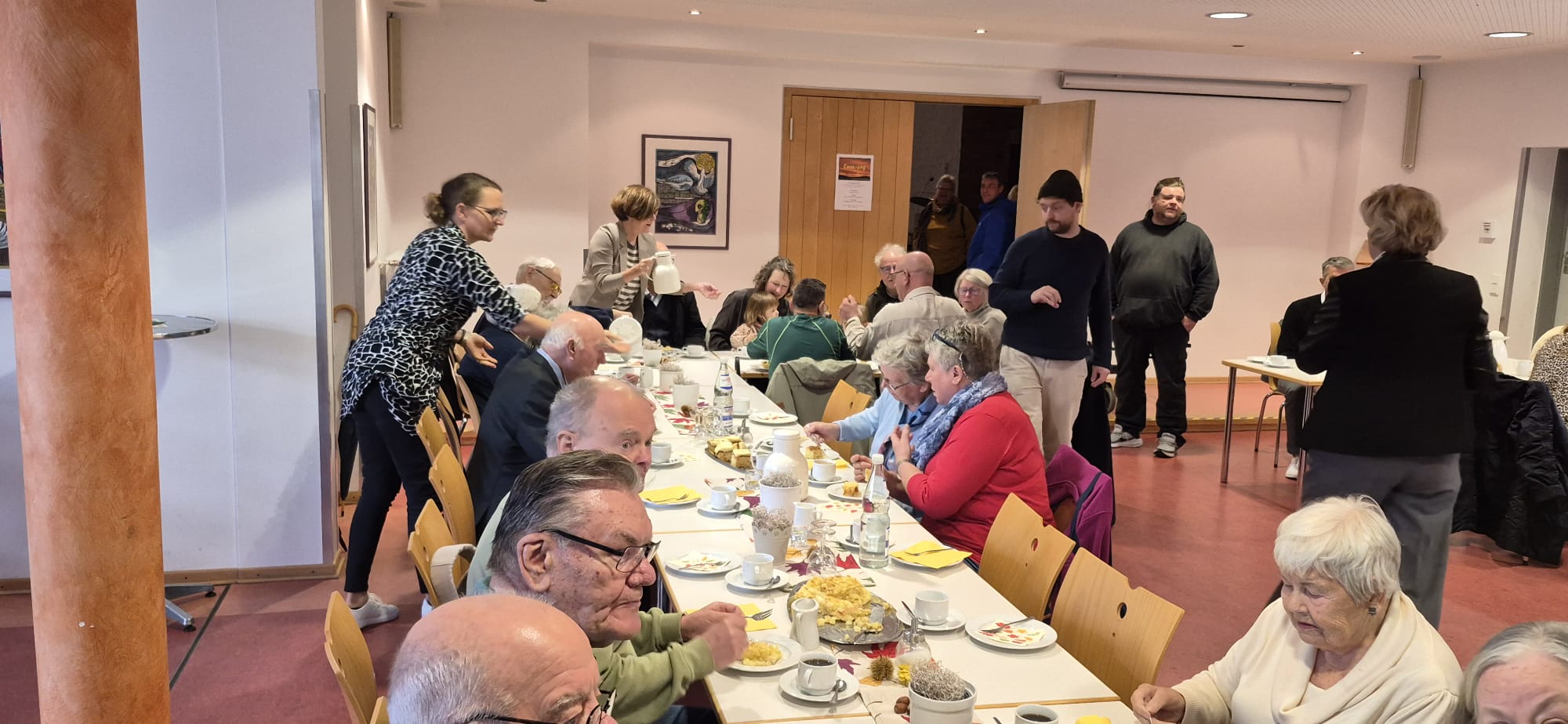 Später beim gemeinsamen Kaffeetrinken im Gemeindehaus wurde natürlich über den Gottesdienst gesprochen und über die eigenen Erfahrungen und Berührungen im Leben zum Thema Demenz.
