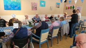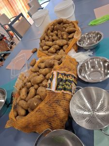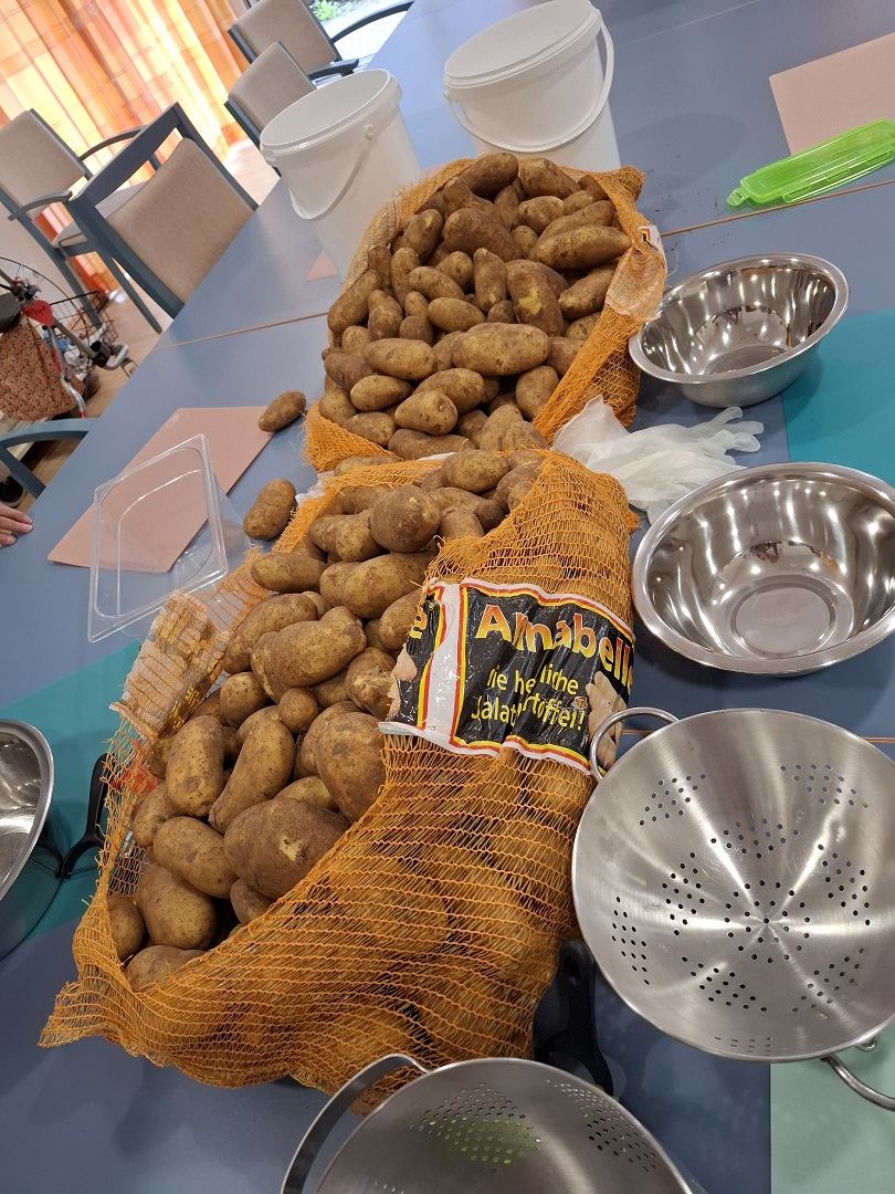Die Schnibbelgruppe hat sich selber den Namen „ Kartoffelkäfer“ gegeben an den Tagen, wo es gewünscht ist, Kartoffeln zu schälen. Mit soviel Humor an die Arbeit zu gehen, ist schon sehr schön mitzuerleben.