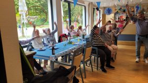 Die Stimmung im Café war einmalig gut. Es wurde geschunkelt, getanzt und mit der Öcher Boyband, den „Öcher Stadtmusikanten“, den Saal zum Beben gebracht.