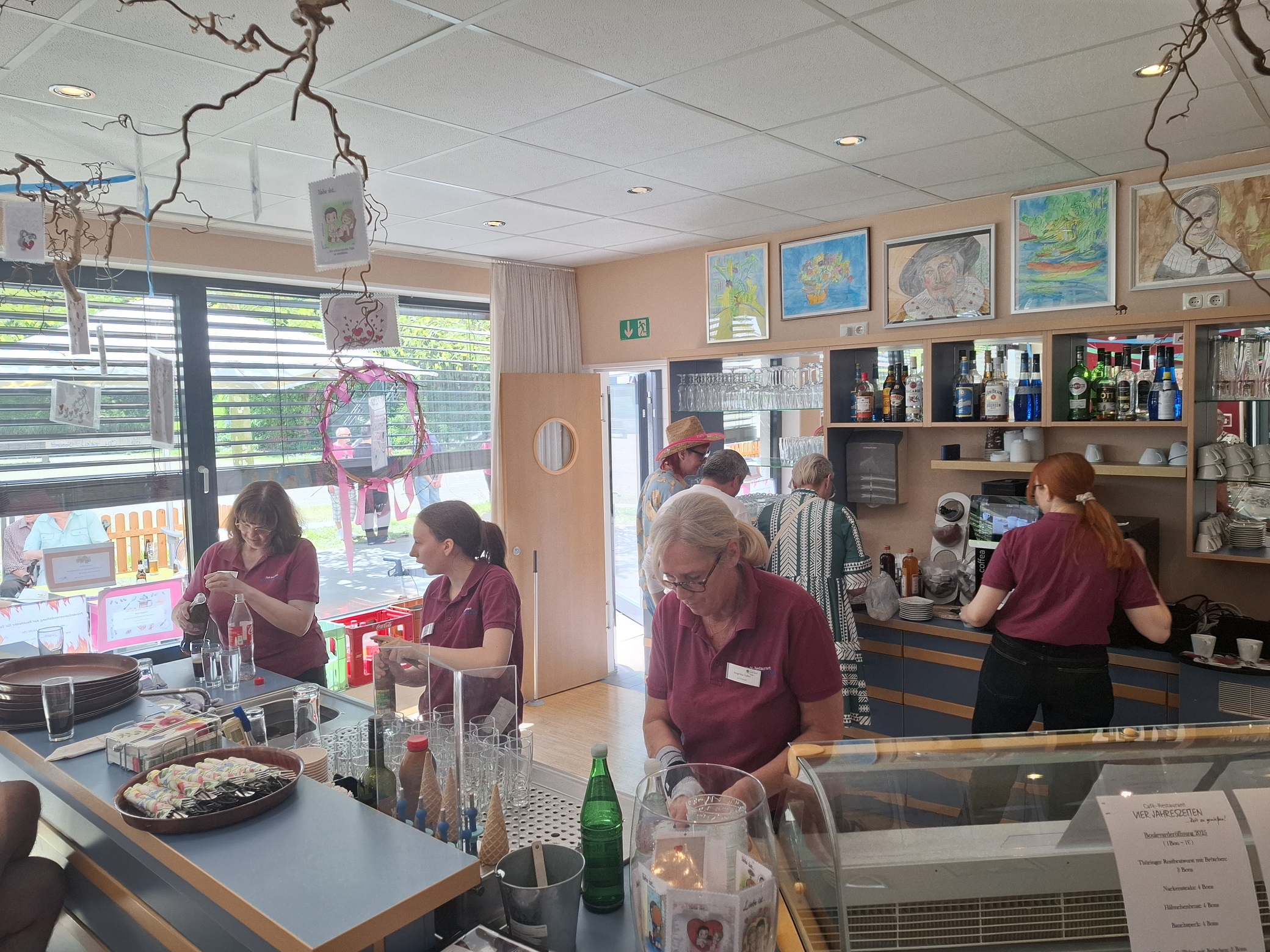 Was war mal wieder für ein Trubel beim Jahrmarkt der guten Laune. Der Aufbau am Morgen begann mit einem Regenschauer und wir hatten schon Sorge, dass unser Sommerfest im Café Restaurant „Vier Jahreszeiten“ sprichwörtlich ins Wasser fällt. Doch falsch gedacht, denn als der Grill aufheizte strahlte auch die Sonne bis zum Schluss.