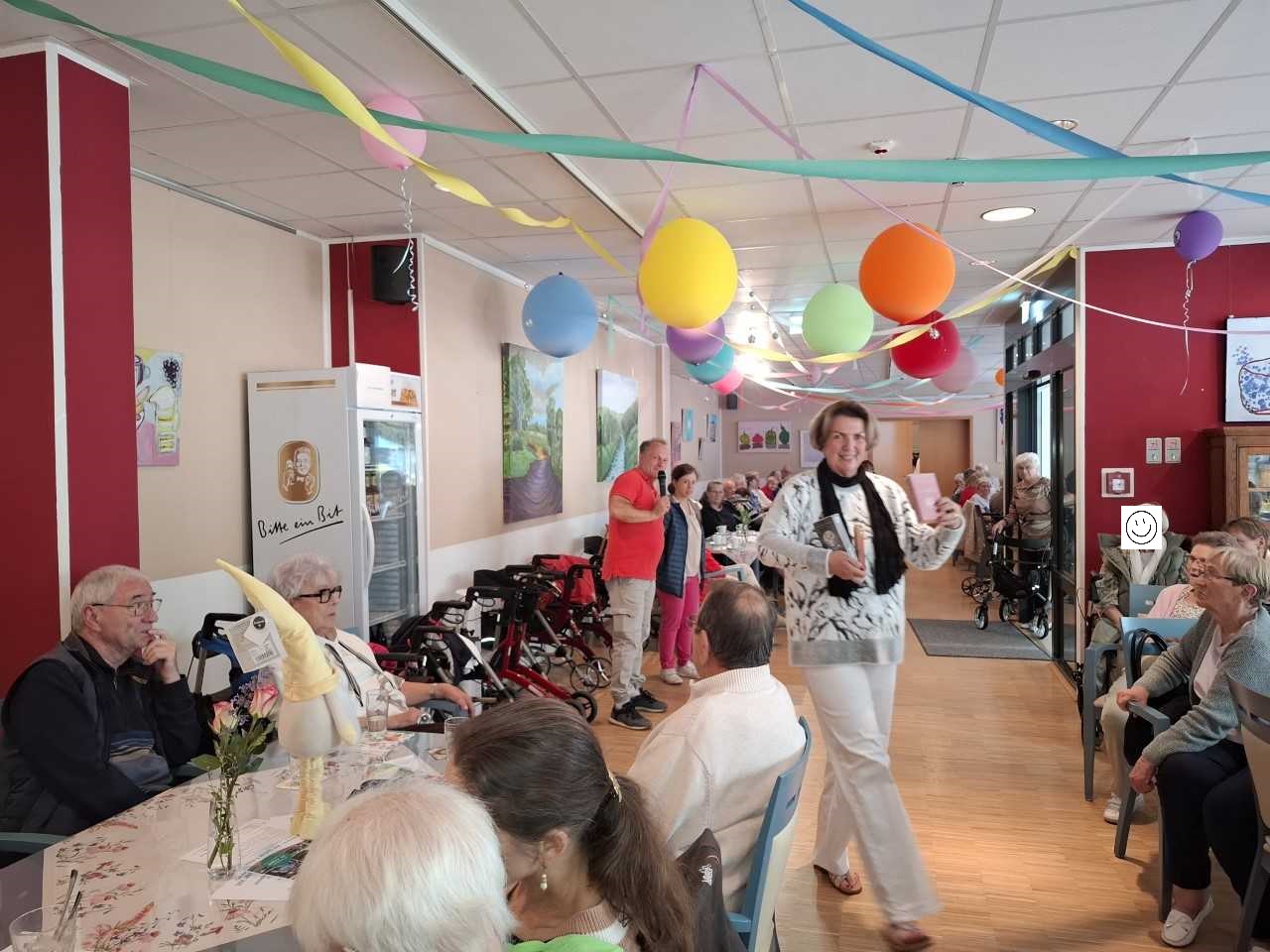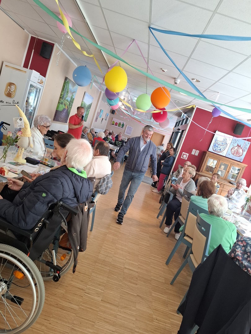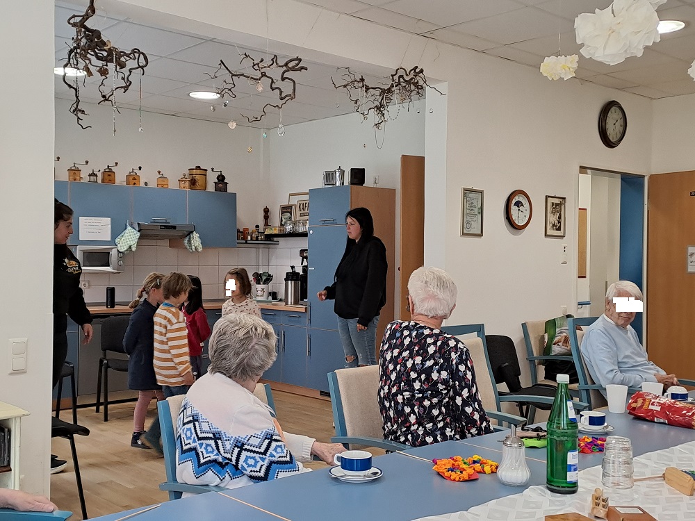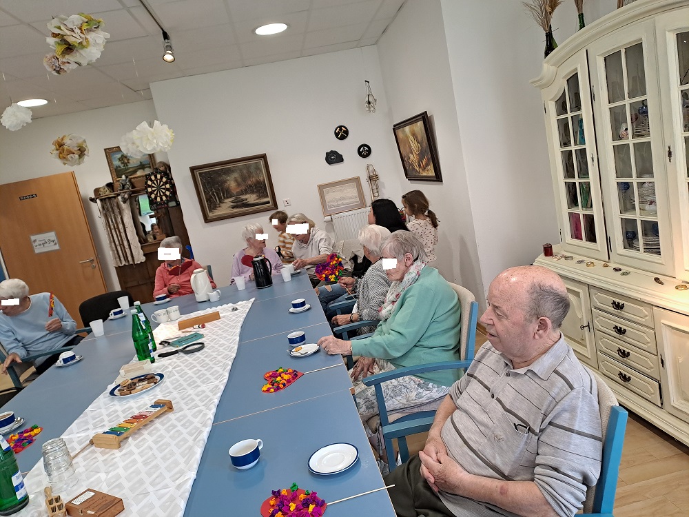 Auch wenn heute nur eine Handvoll Kinder des Kindergartens „Lebensspielraum“ in unsere guten Stube war, war die Lebendigkeit der jungen Generation voller Energie zu spüren. Mit gebastelten Maiherzen und Gedichten im Gepäck wurde die Stimmung schnell sehr fröhlich. Die Senior*innen erzählten ihre Erinnerungen zum Wonnemonat, und die Kleinen hörten gespannt zu. Mal wieder ein toller Nachmittag in unserer Einrichtung.