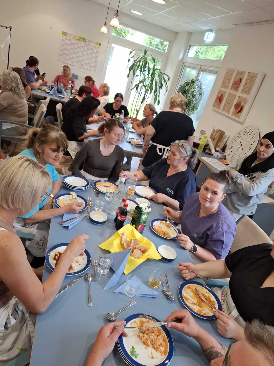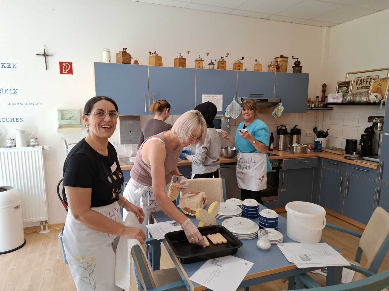 Die Teilnehmer der „Kaffee & Tee“-Zeit haben irgendwann angefangen, über eines der Lieblingsthemen zu sprechen – und zwar „Essen“. Gestern war es wieder soweit und die selbst gefundene Gruppe traf sich zum Kochen und gemeinsam Essen.