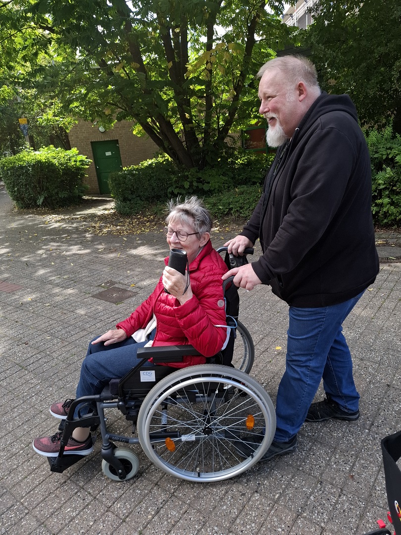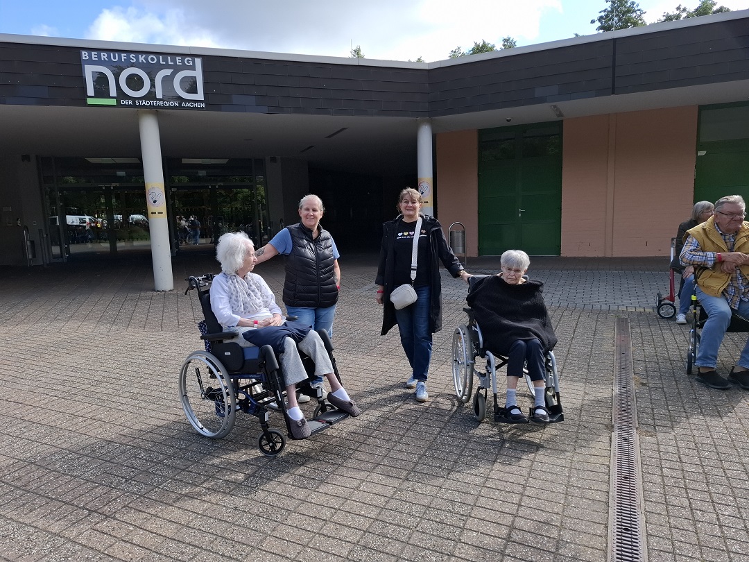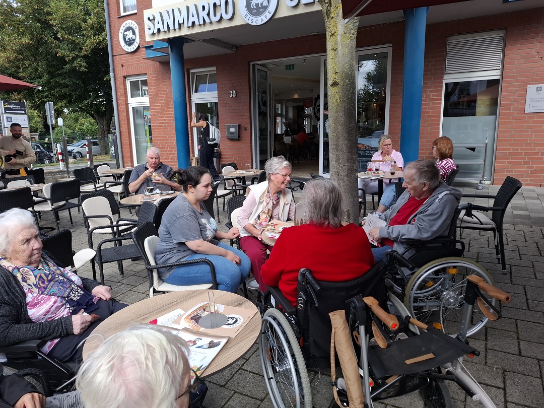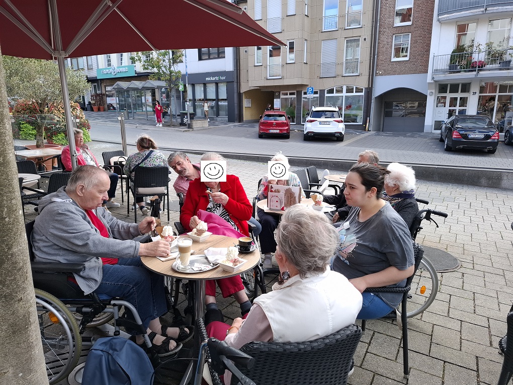 Gestern haben wir den Wolken getrotzt und sind mit einer Handvoll BewohnerInnen zum Markt hier in Würselen gegangen. In der Eisdiele wurden wir sehr freundlich und vorbildlich bedient und somit schmeckte der Eisbecher umso besser. Der Weg zurück ging über die belebte Kaiserstraße und verschiedene Schaufenster luden uns ein, stehen zu bleiben.