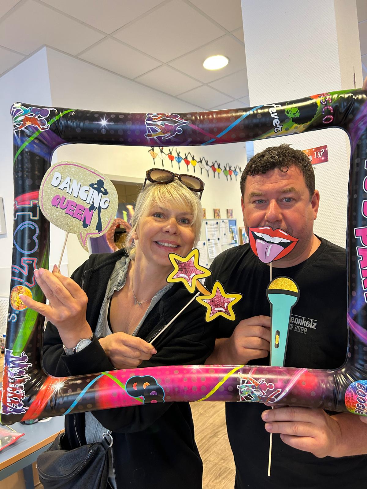 Auch die ersten „Autofreien Sonntage“, die farbenfrohen Dekorationen aus der Zeit oder andere große Ereignisse wurden in Erinnerung gebracht. Natürlich war die Tagespflege entsprechend dekoriert: Schallplatten hingen von der Decke und unsere Gäste konnten sich als echte Schlagerstars fotografieren lassen.