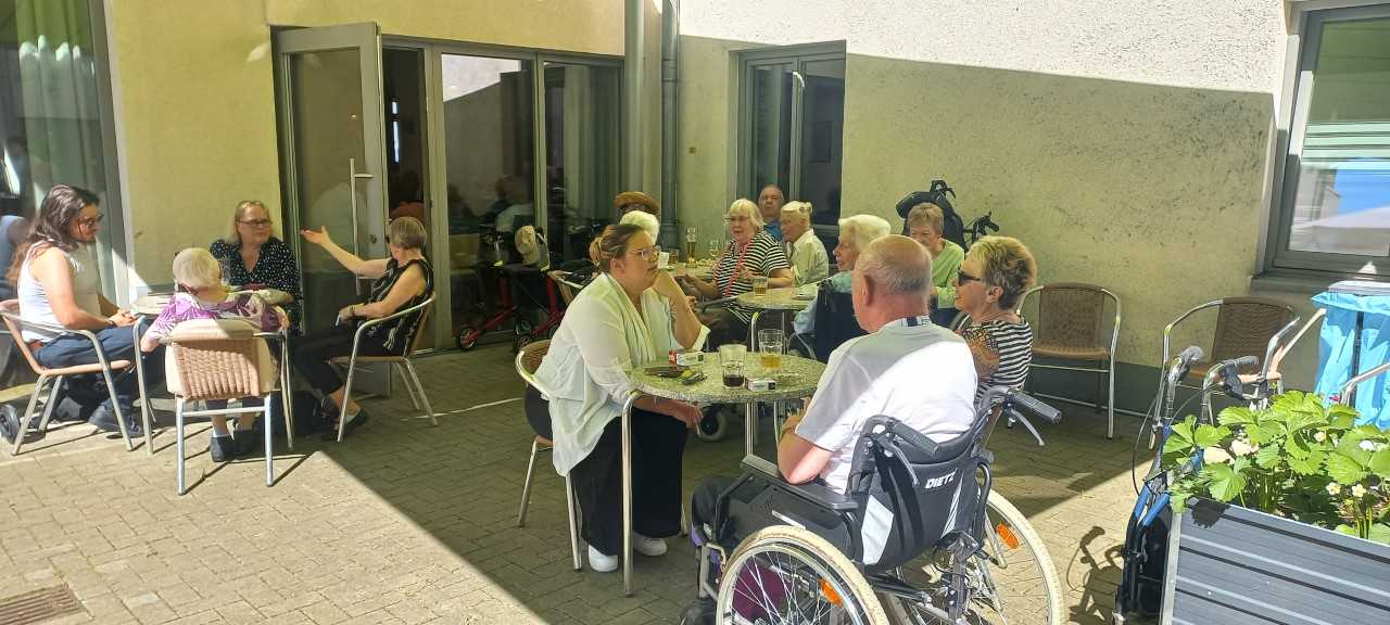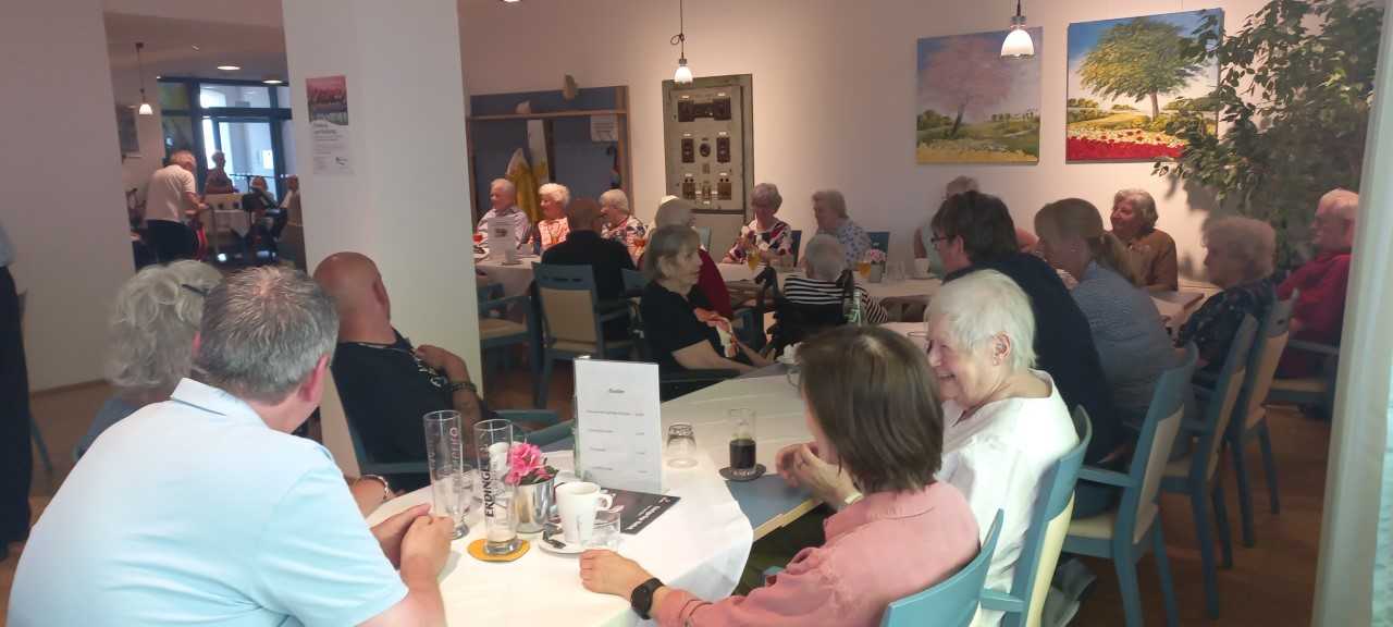 Am Muttertag wurde im Senioren-Park carpe diem in Mülheim ordentlich gefeiert: Bei strahlendem Sonnenschein konnte auch der frisch bepflanzte Innenhof des Cafés „Vier Jahreszeiten“ von den zahlreichen BesucherInnen genutzt werden, was auch notwendig war, da die alte Lederfabrik aus allen Nähten zu platzen schien. Kein Wunder, bei dem Programmangebot: Der Shantychor Kormoran erfreute uns mit bekannten Seemannsliedern, die zum Mitsingen und Schunkeln einluden, der Chef persönlich stand hinter dem Grill und bot eine köstliche Fleisch- und Salatauswahl an, es gab eine große Auswahl an Torten und Kuchen und natürlich die üblichen Heiß- und Kaltgetränke.