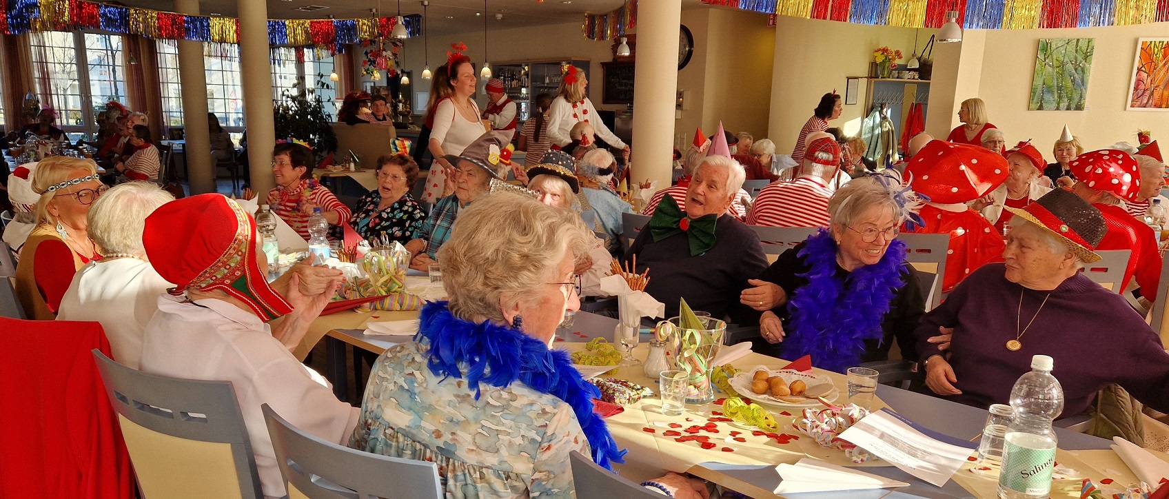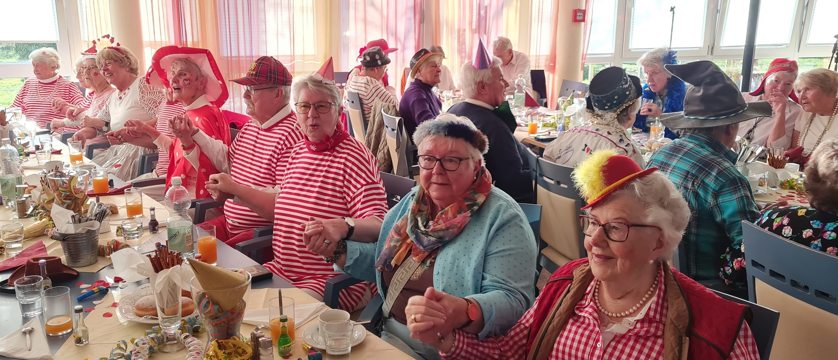 Bis in den Abend hinein gab es dann zwei Büttenrednerinnen, einige Polonaisen und leckere Sachen zu Essen und Trinken. Die Stimmung hätte besser nicht sein können, alle, Mitarbeitende, Tagesgäste, externe Gäste und unsere Mieter*innen waren restlos begeistert.