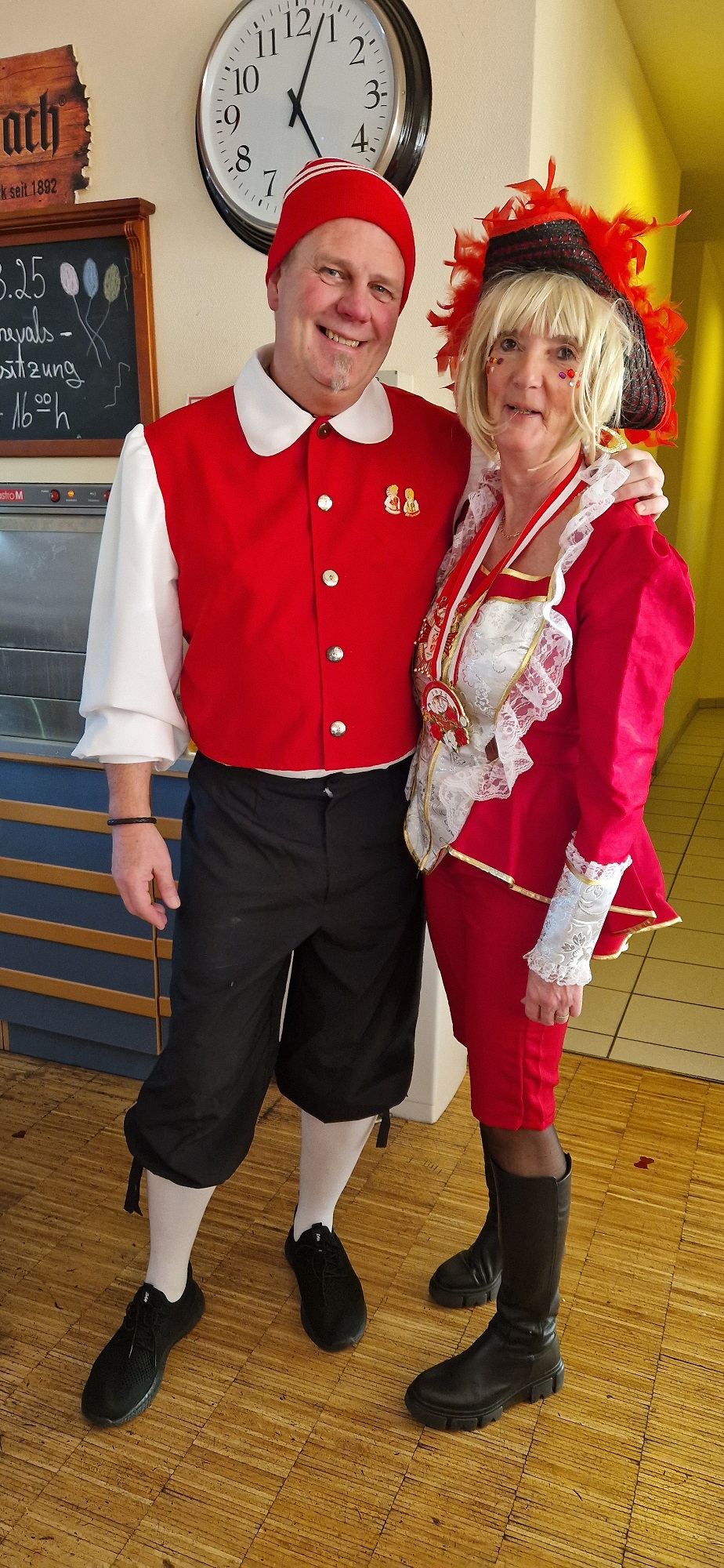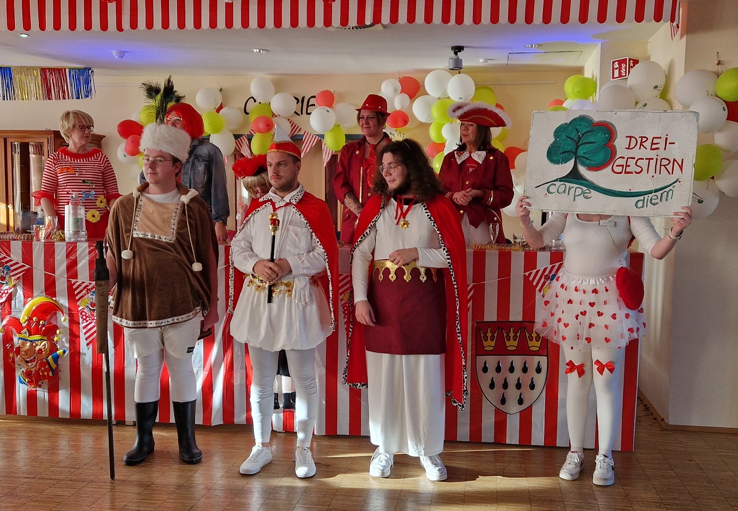 Am Veilchendienstag ging in unserem Restaurant noch einmal richtig die Post ab. Nach dem Einmarsch unseres kleinen Elfer-(Fünfer-)Rats zog erstmalig unser hauseigenes Dreigestirn ein. Bauer Nikodem I, Prinz Philip I. und Jungfrau Patricia stellten sich vor, wagten das eine oder andere Tänzchen mit den Gästen und hatten auch zwei Lieder mitgebracht.