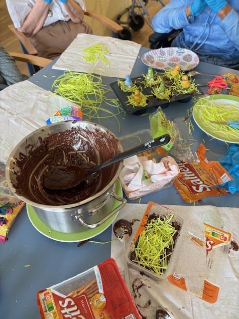 Ostern steht vor der Tür- und bei uns in der Kurzzeitpflege wurde heute nicht nur kreativ gearbeitet, sondern auch genascht. In liebevoller Handarbeit entstanden leckere, essbare Osternester, die nicht nur schön aussehen, sondern auch richtig gut schmecken. Die Aktion sorgte bei unseren Bewohner*innen für viel Spaß!