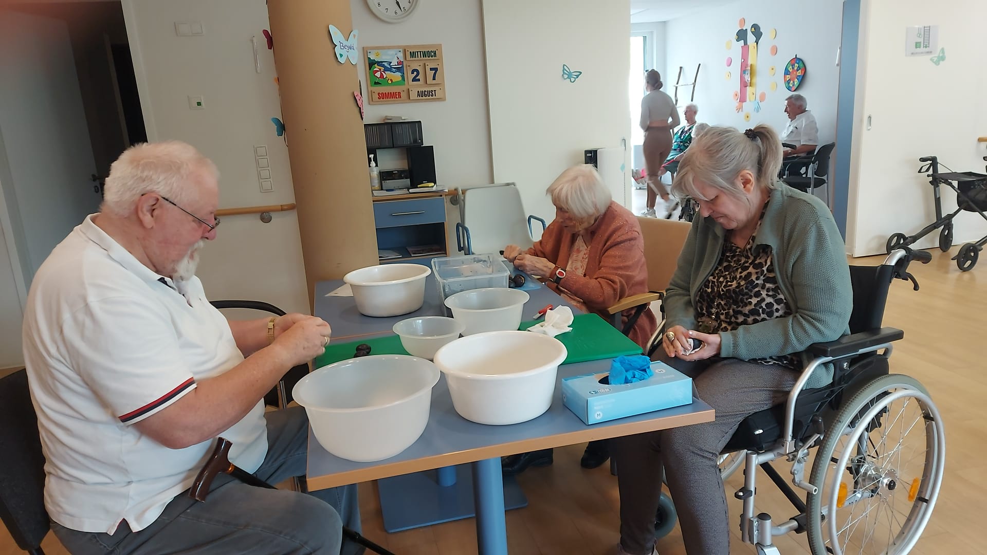 Zum Thema Herbst darf auch der leckere Pflaumenkuchen mit Streusel nicht fehlen. Mit Begeisterung wurde geknetet und die Pflaumen bearbeitet.