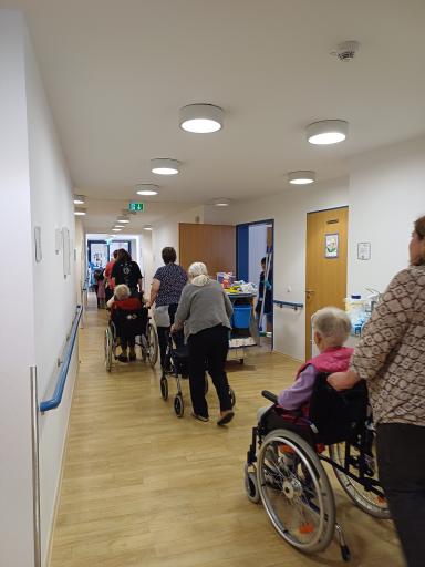 Diese Woche besuchten uns der Kindergartens Kreuzberg. Die Kinder sangen Lieder, und machten Singspiele, bei denen die Bewohner mit einbezogen wurden. Groß und Klein hatten Freude an dieser schönen Begegnung. Zum Abschluss wurde eine Polonaise über den Flur gemacht. Wir freuen uns auf den nächsten Besuch der Kinder, die regelmäßig zu uns kommen. Dankeschön.