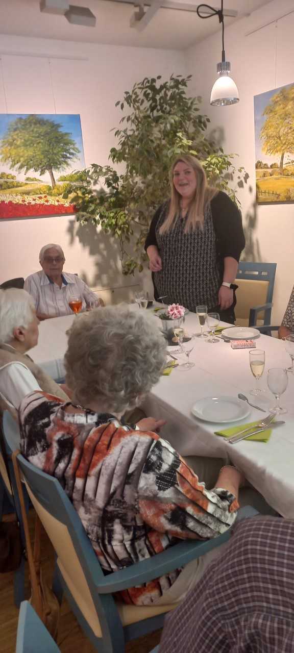 Außerdem bot sich die Möglichkeit, unsere neue Einrichtungsleitung, Frau Buschhaus, den Bewohnerinnen und Bewohnern vorzustellen. Schnell entwickelten sich lebhafte und angeregte Gespräche, in denen das gegenseitige Interesse deutlich spürbar war. Viele Themen aus dem Alltag, der persönlichen Biografie sowie der aktuellen Weltlage wurden offen und aufmerksam diskutiert.