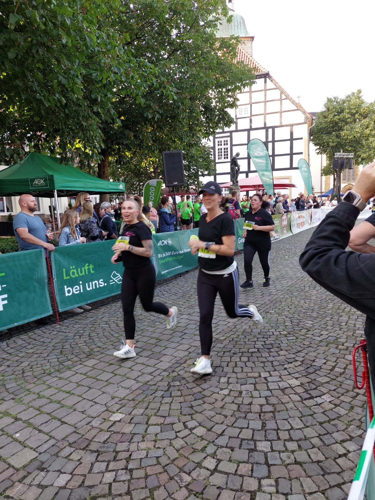 Die Strecke führte vorbei an beschaulichen Fachwerkhäusern und um den Emssee im ehemaligen Landesgartenschaupark. Unter den jubelnden Zuschauern waren auch einige Angehörige, die die LäuferInnen kräftig anfeuerten und Mut zusprachen.