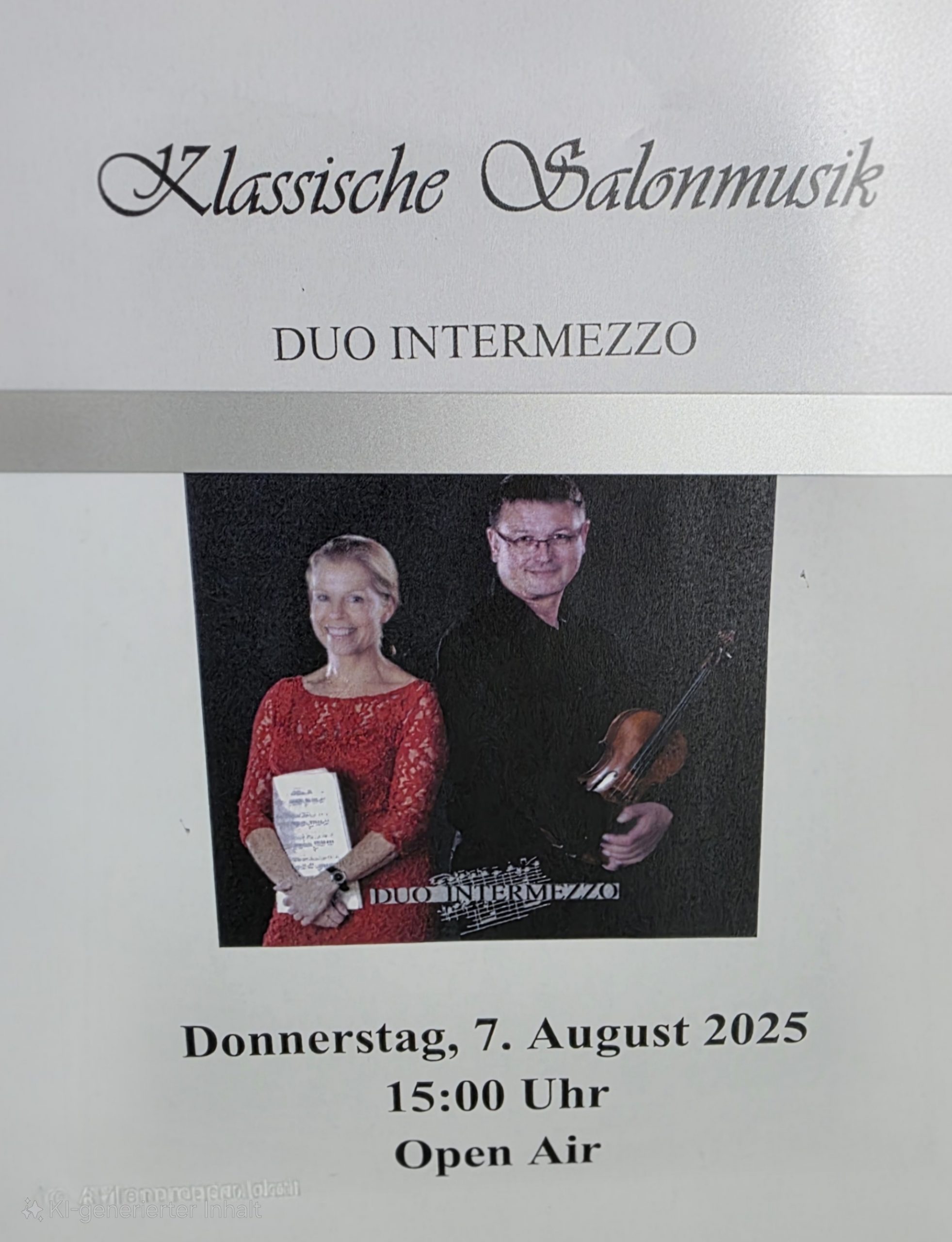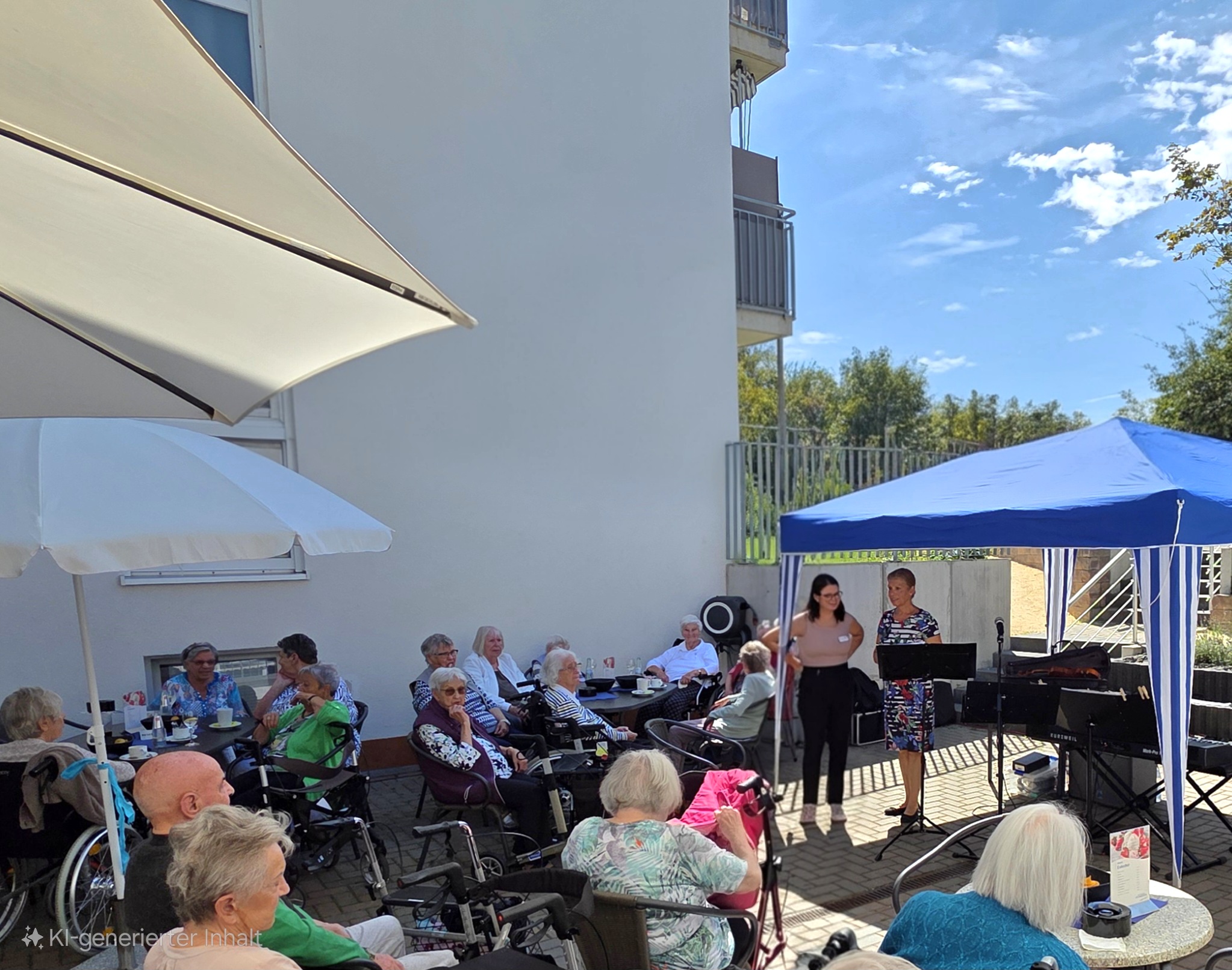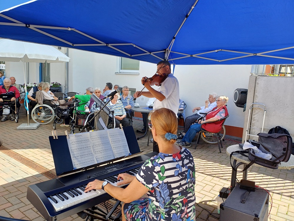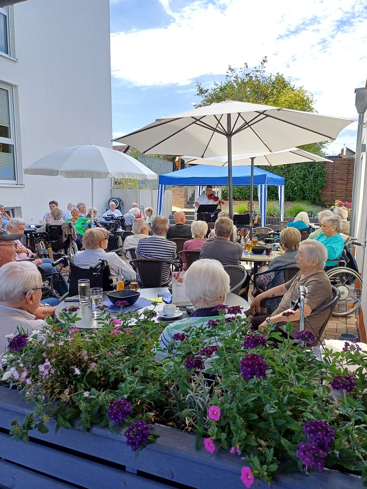 Der Sommer im Waldalgesheimer Senioren-Park ist wieder voller schöner Momente und lebendiger Veranstaltungen. Besonders das „Kurkonzert“ mit dem Duo Intermezzo hat uns alle berührt. Anfang August durften wir auf der Terrasse des Café-Restaurants „Vier Jahreszeiten“ klassische Klänge von Grieg und Tschaikowski genießen – gespielt mit Geige und E-Piano. Die Musik war so fein und einfühlsam, dass sie den Zuhörern direkt ins Herz ging. Ein herzliches Dankeschön an unser Team der Sozialen Betreuung um Alexandra Fedoryszyn, das diese Veranstaltung so liebevoll vorbereitet hat. Die Begeisterung und der Beifall zeigten, wie sehr unsere Gäste die musikalischen Momente schätzen.