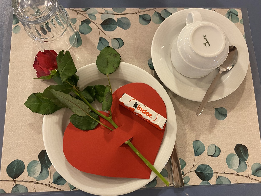 Heute haben wir unsere Gäste mit einer kleinen, aber herzlichen Geste überrascht. Zum Muttertag gab es für jede Dame eine duftende Rose und etwas süße Schokolade.