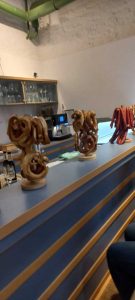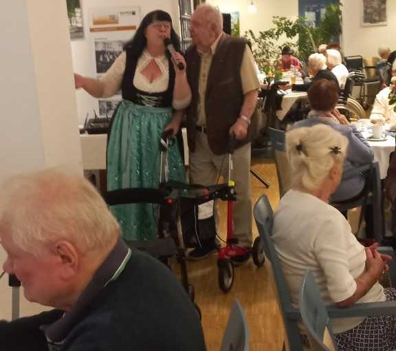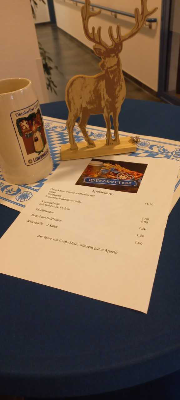 Frau Hedtmann sang die bekannten Wiesn Lieder, unsere Küche hat uns mit Haxen, Weißwürsten, Brezeln und Kraut verwöhnt, angestoßen wurde mit bayerischem Bier und zur ganz großen Überraschung erschienen zwei junge Mädchen aus der Nachbarschaft und überreichten allen ein frisches Blümchen, einfach nur so, um uns eine Freude zu bereiten.