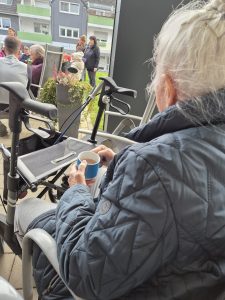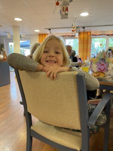Danach wurde viel gelacht und sogar ein kleines „Turnprogramm“ gestartet: Die beiden Mädchen spielten Zirkus, wirbelten mit dem Hula-Hoop und zeigten voller Stolz ihre Kunststücke. Unsere Gäste waren begeistert und man sah, wie das Zusammensein von Jung und Alt beiden Seiten Freude schenkt.