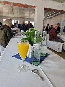 Diesen wichtigen Entwicklungsschritt hob man nun mit einem Richtfest hervor. Eingeladen waren Vertreter der carpe diem GBS mbH als künftige Betreiber, Planer, Bauleiter, Handwerker sowie Wohnungseigentümer. Im zukünftigen Gemeinschaftsraum der Tagespflege stießen die Anwesenden gemeinsam auf den laufenden Baufortschritt an. HKM-Geschäftsführer Philipp Müller erklärte: „Eigentlich ist es kein klassisches Richtfest, denn das Haus hat keinen Dachstuhl, sondern eine Betondecke.“