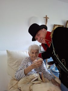 Pünktlich zum 11.11. um 11.11 Uhr fand in Dabringhausen der Karnevalsauftakt statt. Im Restaurant wurde auf einer Leinwand der Karnevalsauftakt aus Köln gezeigt und auf den Wohnbereichen wurde mit Karnevalsmusik, Kostümen, Eierlikör und Mini-Berlinern gefeiert. Auch eine Runde durch das Betreute Wohnen durfte natürlich nicht fehlen.