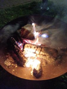 Von allen Seiten kamen Kinder mit ihren Laternen, die bewundert wurden. Auch der St. Martin kam auf seinem Pferd und wurde bestaunt. Die Musikkapelle spielte Martinslieder, die wir gut mitsingen konnten. Dann wurde das Feuer entzündet und wir saßen gemütlich bei Glühwein, Punsch oder Kakao zusammen.
