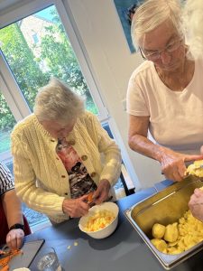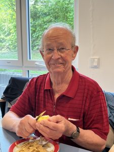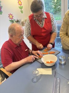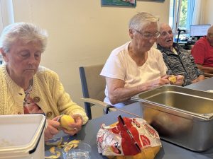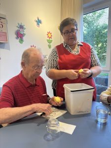 Das war die Frage, die unsere Pflegedienstleitung Elisabeth Schmidt ihren Gästen der Tagespflege Waldalgesheim stellte. Die Antworten waren vielfältig und so wurde beschlossen, gemeinsam zu kochen und zu backen. Es wurde geschält, geschnippelt, gebrutzelt, gerührt und probiert.