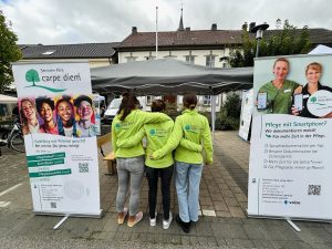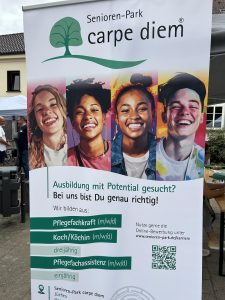 Besonders gefreut hat uns, dass viele Menschen den Weg zu unserem Stand gefunden haben. Ob mit Fragen rund um eine Ausbildung, einem stationären Platz oder einfach um mehr über unsere Arbeit zu erfahren. Wir konnten viele Informationen weitergeben und dabei auch zeigen, wofür der Senioren-park carpe diem steht.