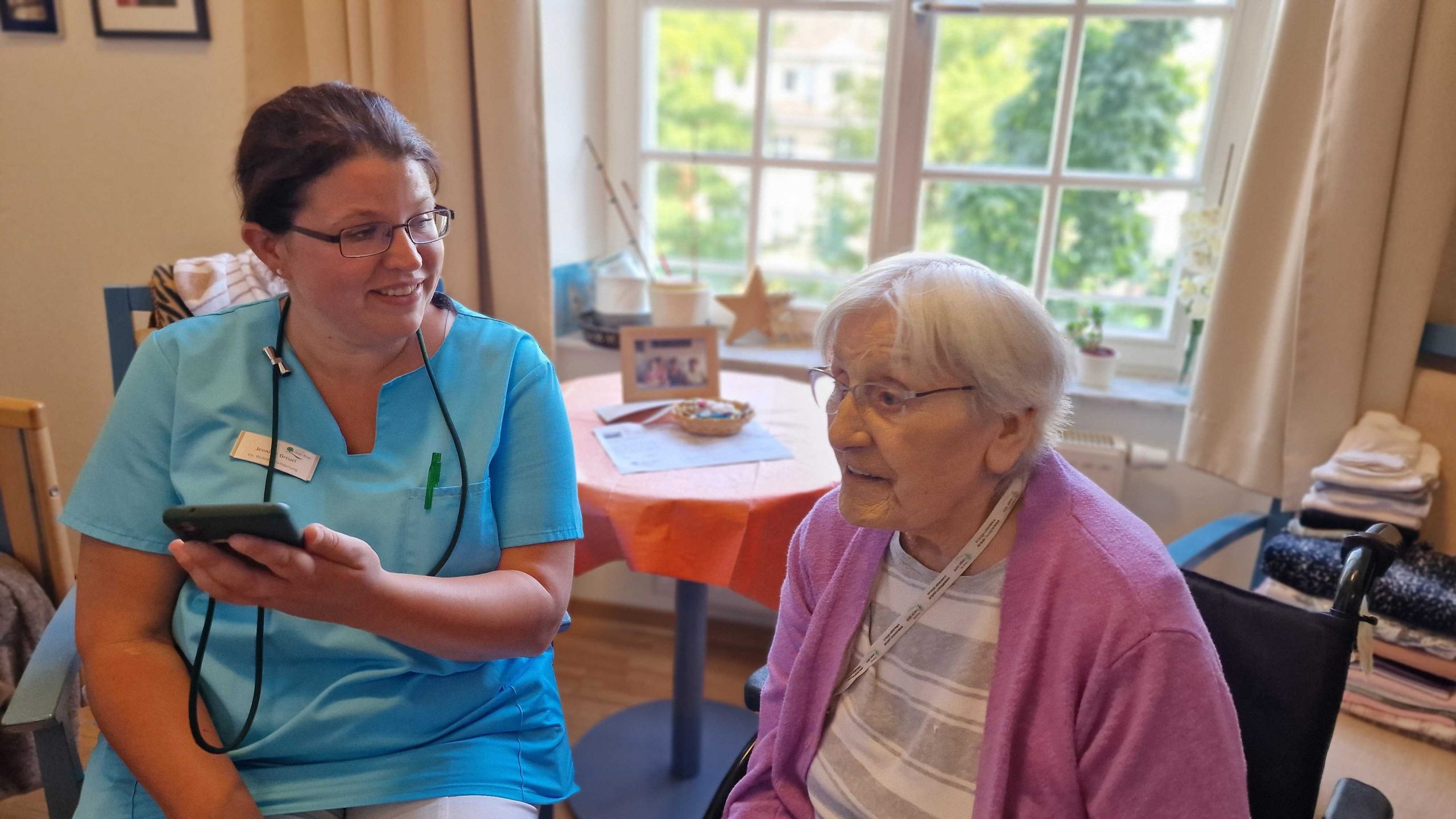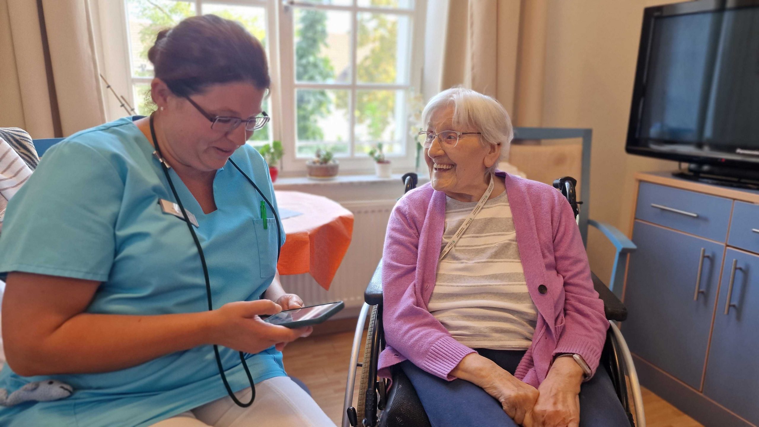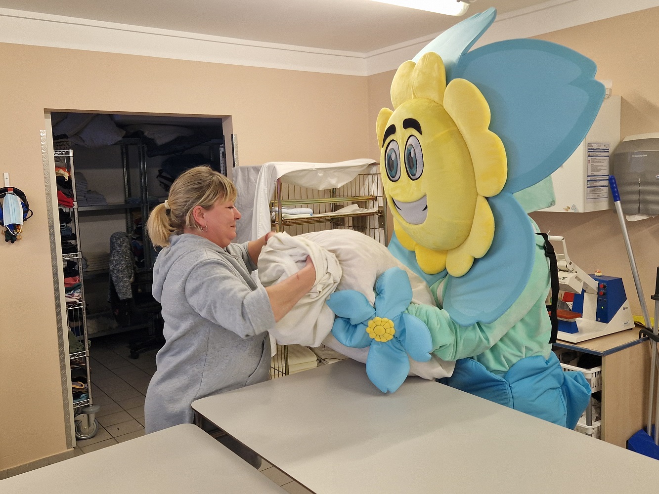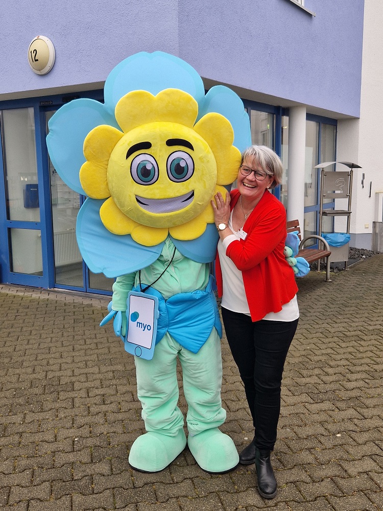 Mit der myo-App arbeitet die Einrichtung schon seit mehreren Jahren sehr erfolgreich. Am Dienstag erhielt der Senioren-Park Besuch von Louise Lamatsch, Kundenbetreuerin der Myosotis GmbH aus Berlin, und ihrer Kollegin Dana Forker. Sie waren zu einem Ehrenamtstag nach Weilrod gekommen. „Wir möchten uns bei dem Team des Senioren-Parks für ihr Engagement bedanken und mit Myolino etwas Freude in den Alltag bringen“, sagte die Senior Key Account Managerin und fügte hinzu: „Der Senioren-Park in Weilrod-Hasselbach verfasst die meisten Beiträge im Monat und gewinnt fast jede Challenge.“ Und die Konkurrenz ist groß, da die myo-App bereits in 450 Pflegeeinrichtungen in Deutschland, England und der Schweiz zum Einsatz kommt. Während das Maskottchen durch die Wohnbereiche des Senioren-Parks zog und süße Naschereien verteilte, packte die myo-Mitarbeiterin in der Betreuung mit an und half überall dort, wo Hilfe gebraucht wurde.
