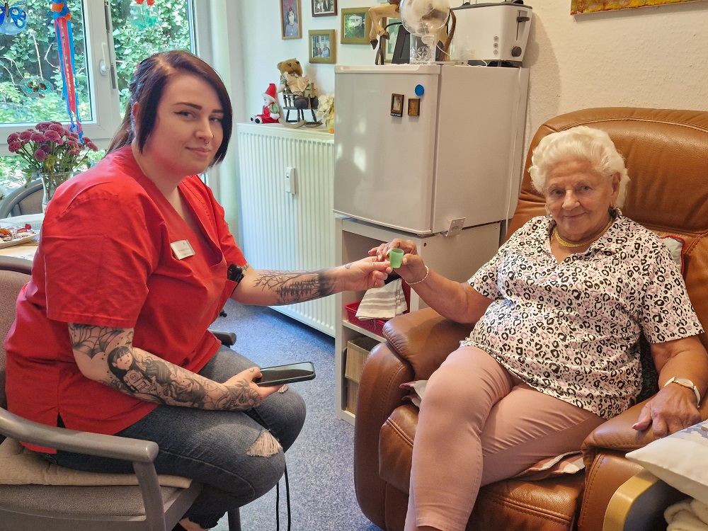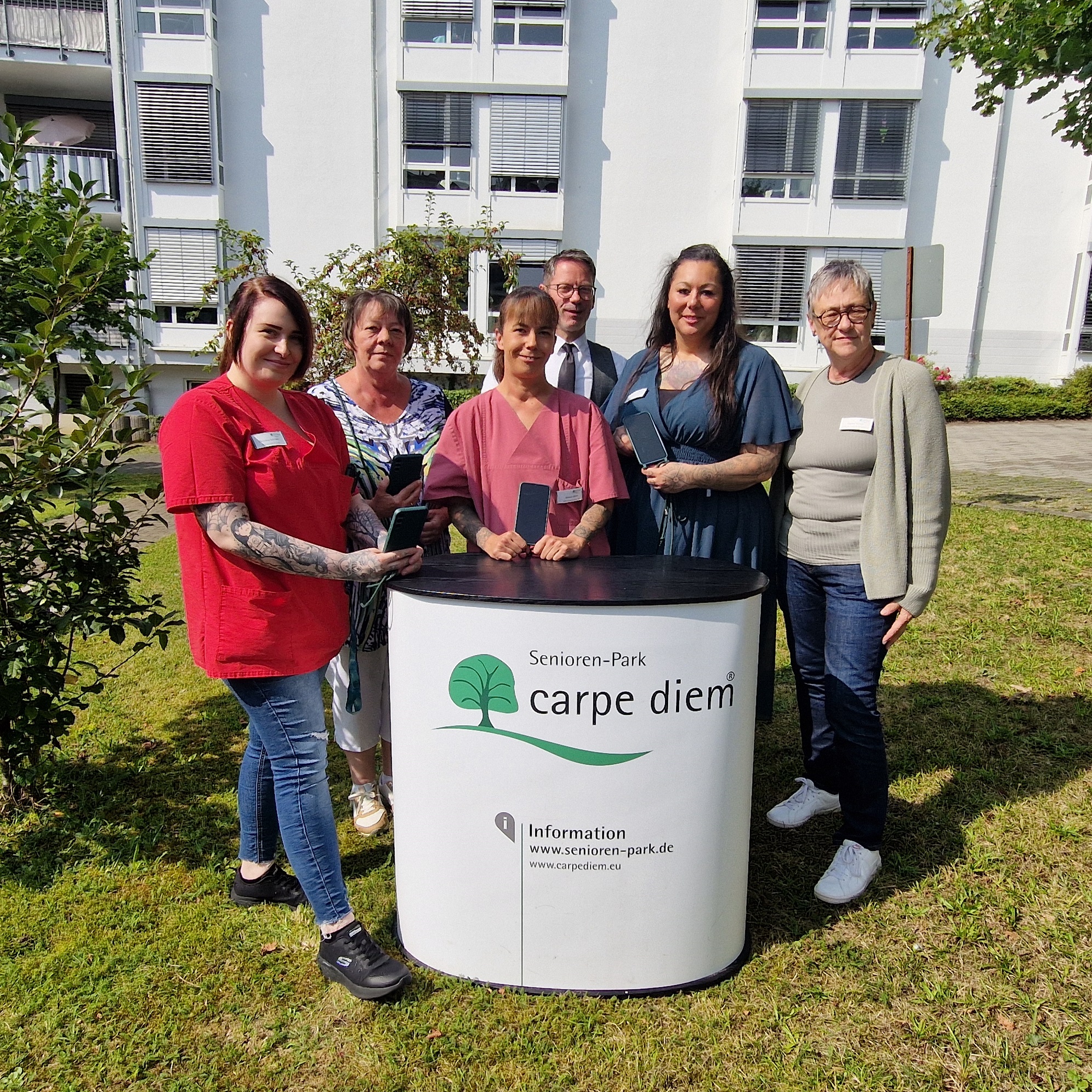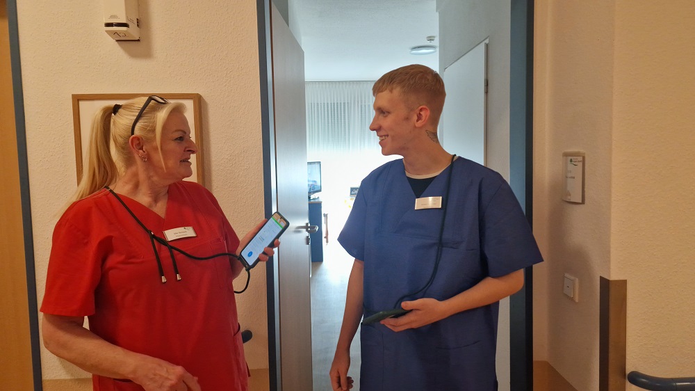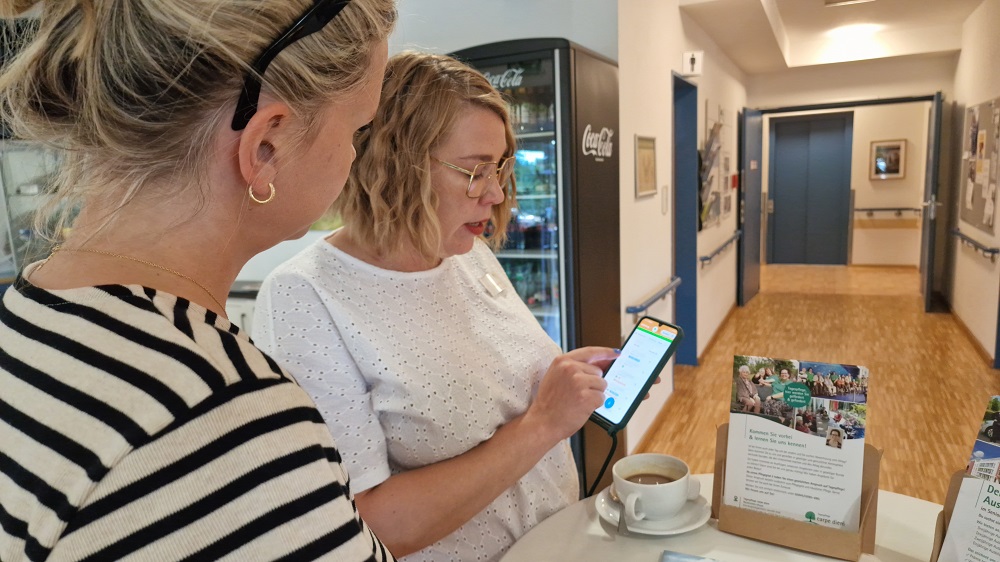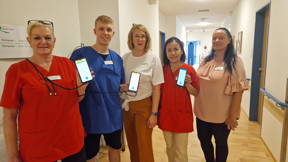 Seit Anfang Juli 2024 arbeiten die Betreuungs- und Pflegekräfte im Senioren-Park carpe diem in Aachen mit der durch künstliche Intelligenz (KI) gestützten Sprachdokumentation „voize“. Einrichtungsleiter Ulrich Kölsch und seine Mitarbeiterinnen berichteten jetzt der lokalen Presse, inwieweit sich der Arbeitsalltag durch die App verändert hat. Bettina Neumann, die zu den älteren Mitarbeitenden zählt, hatte anfangs etwas Sorge, wie sie mit der Sprachdokumentation per Smartphone zurechtkommen wird. „Ich bin nicht damit aufgewachsen und habe auch keinen PC zu Hause“, gibt sie an. Ihre Angst war jedoch unbegründet, denn nach nur einem halben Tag Schulung und zwei Wochen Testphase möchte sie „voize“ nicht mehr missen. Besonders die eingesparte Zeit, die nun den Bewohnerinnen und Bewohnern zugutekommt, erleichtere den Arbeitsalltag. „Alle Mitarbeiter sind sehr positiv überrascht“, bestätigt auch Wohnbereichsleiterin Christina Schröder. Vor allem die Wartezeiten am PC gehören seit der Einführung von „voize“ der Vergangenheit an.