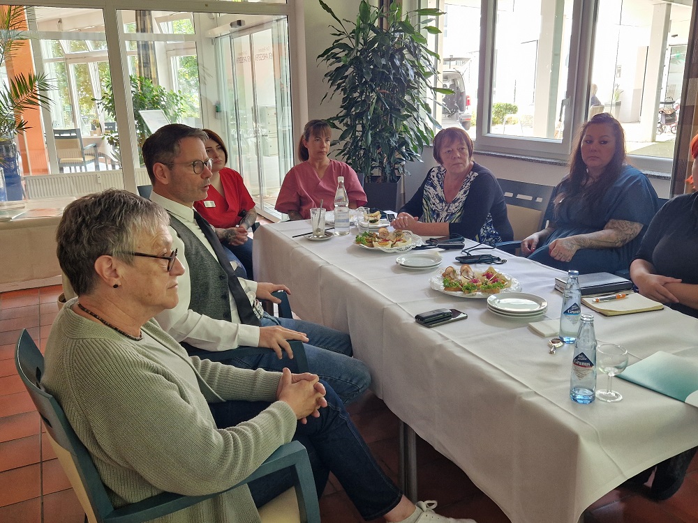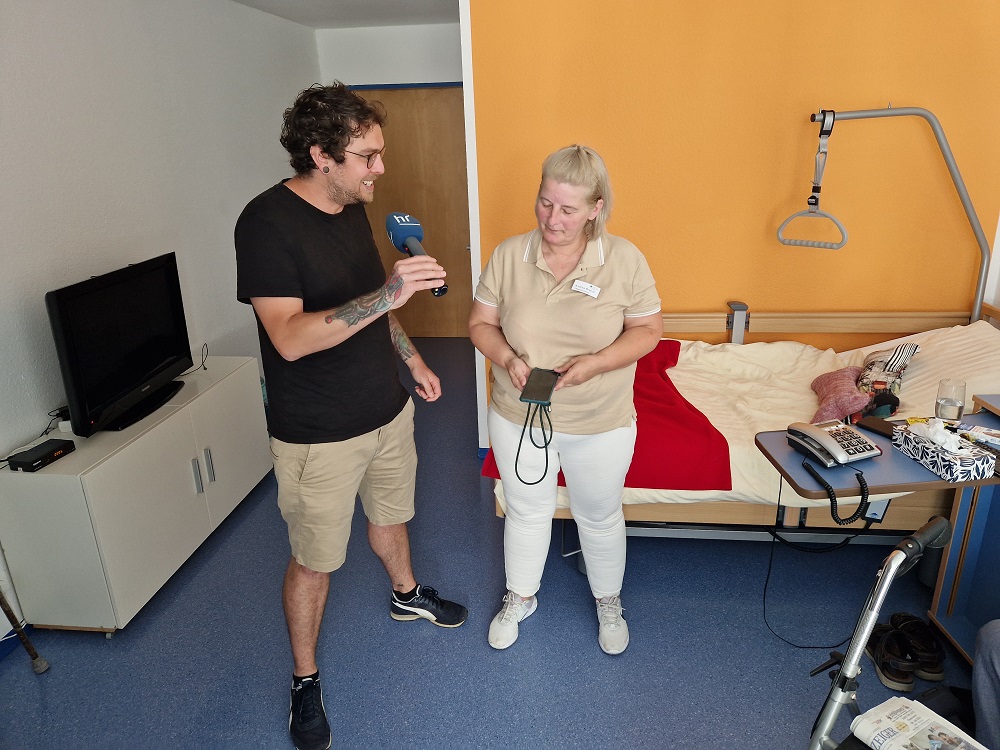 Für die Sprachdokumentation wurden im Senioren-Park Aachen 24 Smartphone angeschafft und das WLAN-Netz ausgebaut. Wie einfach sich das Einsprechen der Vitaldaten gestaltet, konnten die Pressevertreter im Zimmer von Bewohnerin Ehrentraud Wettmann live miterleben. Medikamentengaben, Trinkmengen, Puls und Blutdruck – die App ordnet alle Spracheingaben in die jeweiligen Kategorien, korrigiert Grammatikfehler und fragt nach, falls ein Wert aus dem Rahmen fällt. „Die Dokumentationsqualität ist gestiegen“, nennt Ulrich Kölsch einen weiteren positiven Nutzen. Mitarbeiter eingespart werde dadurch nicht, wie der Einrichtungsleiter betont. Das sei auch gar nicht das Ziel – ganz im Gegenteil. Die Einrichtung müsse sich an den vorgeschriebenen Personalschlüssel halten. Dafür verspricht sich das Unternehmen langfristig eine größere Nachfrage an Bewerbern. „Carpe diem ist schon immer sehr innovativ unterwegs“, freut sich Ulrich Kölsch über die modernen Arbeitsbedingungen im Senioren-Park.