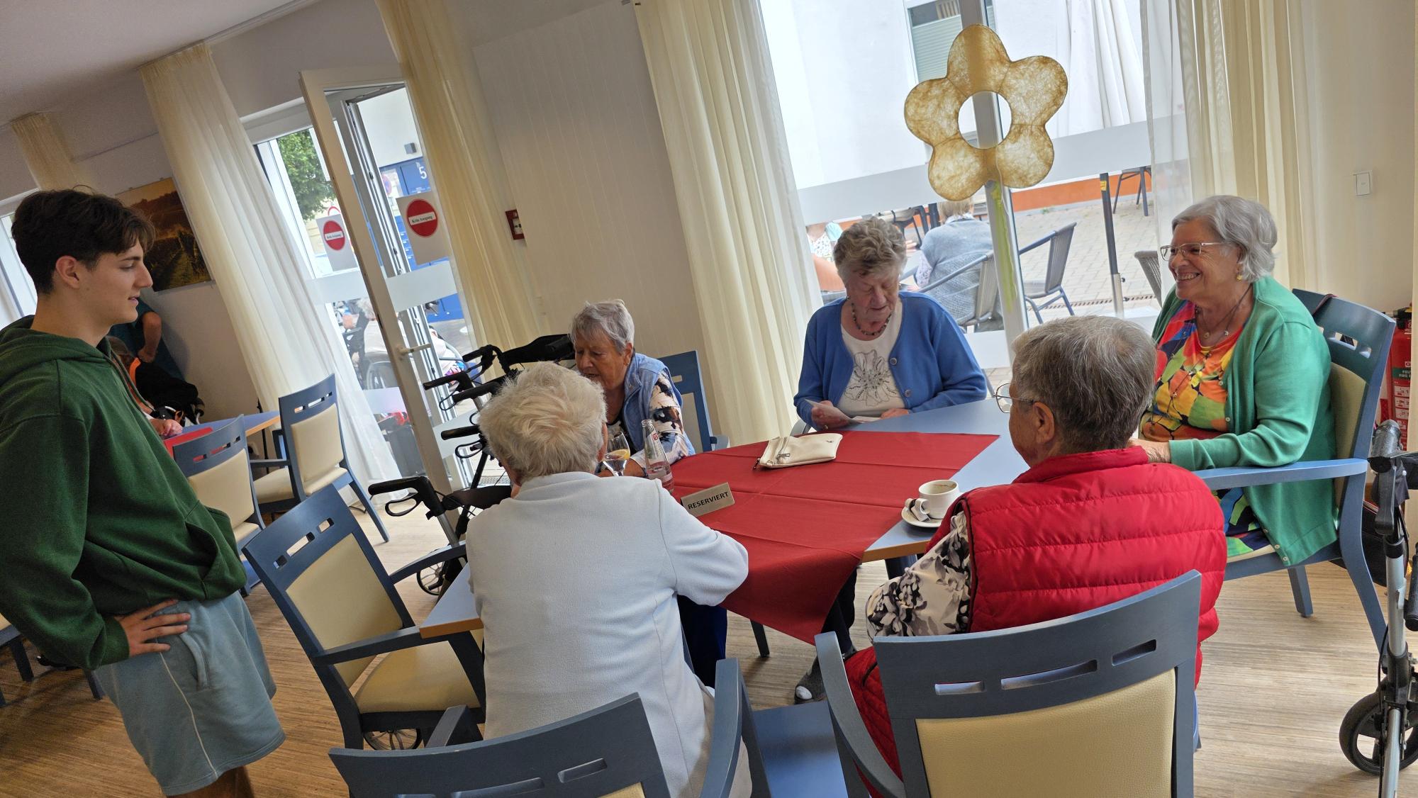 Gut gelaunt präsentierten Jeni Neukam und Tina Scholz das Kerbetreiben im Senioren-Park Waldalgesheim. Das Binger Weingut Michel lud zur Weinprobe ein und sorgte für genussvolle Momente.