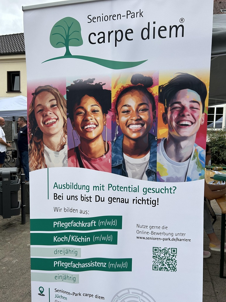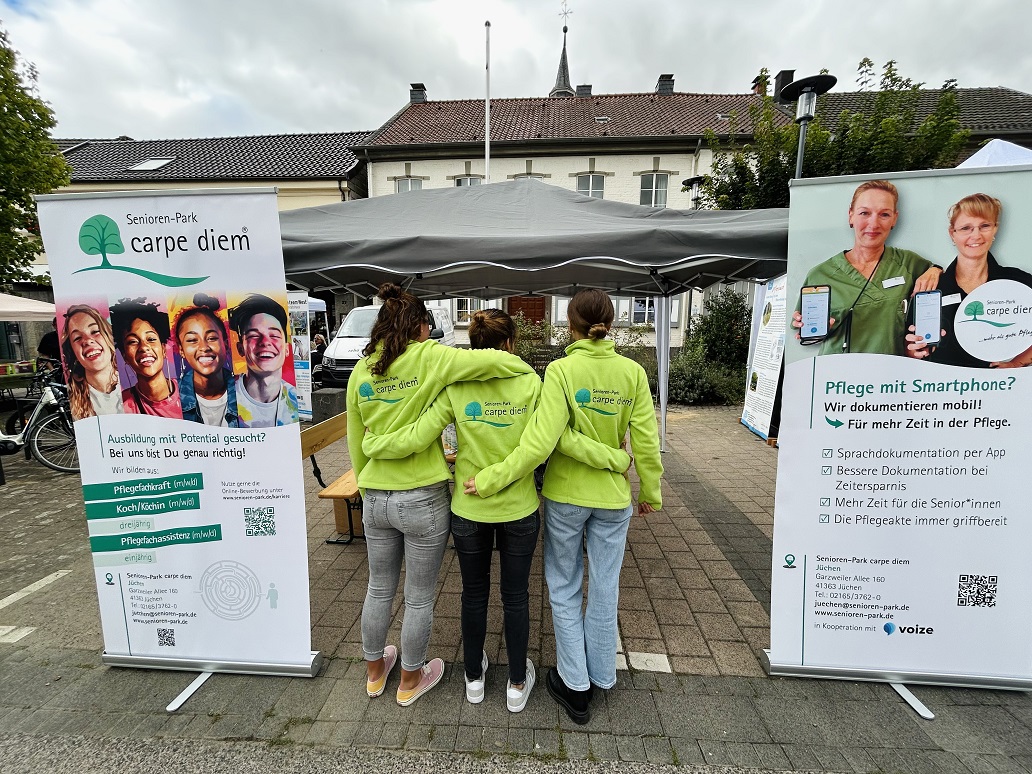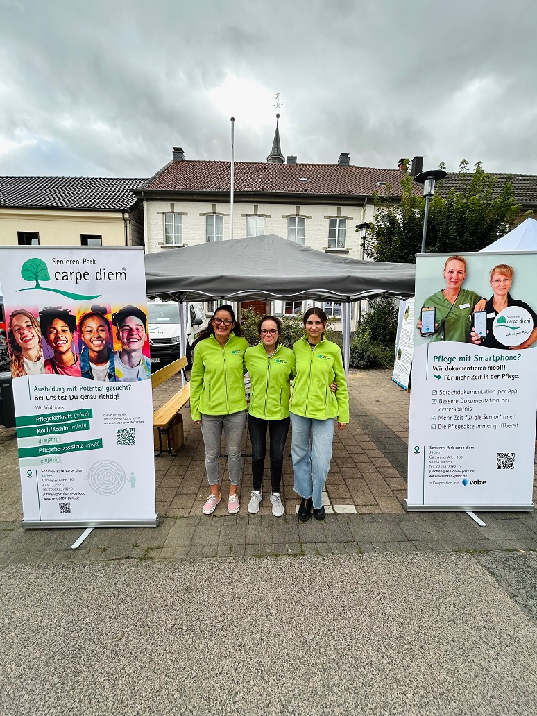 Besonders gefreut hat uns, dass viele Menschen den Weg zu unserem Stand gefunden haben. Ob mit Fragen rund um eine Ausbildung, einem stationären Platz oder einfach um mehr über unsere Arbeit zu erfahren. Wir konnten viele Informationen weitergeben und dabei auch zeigen, wofür der Senioren-park carpe diem steht.