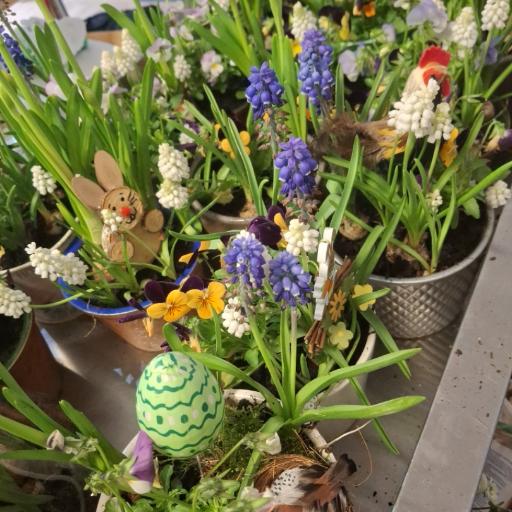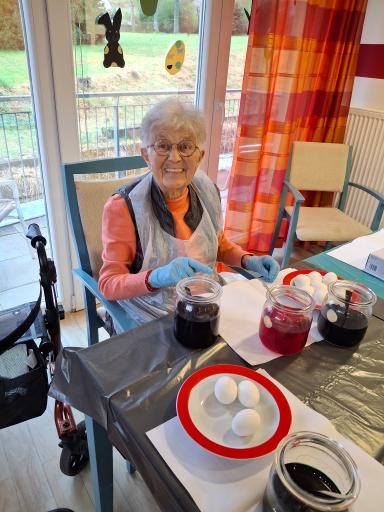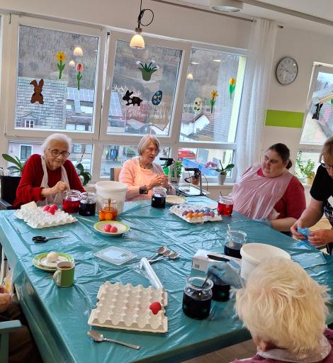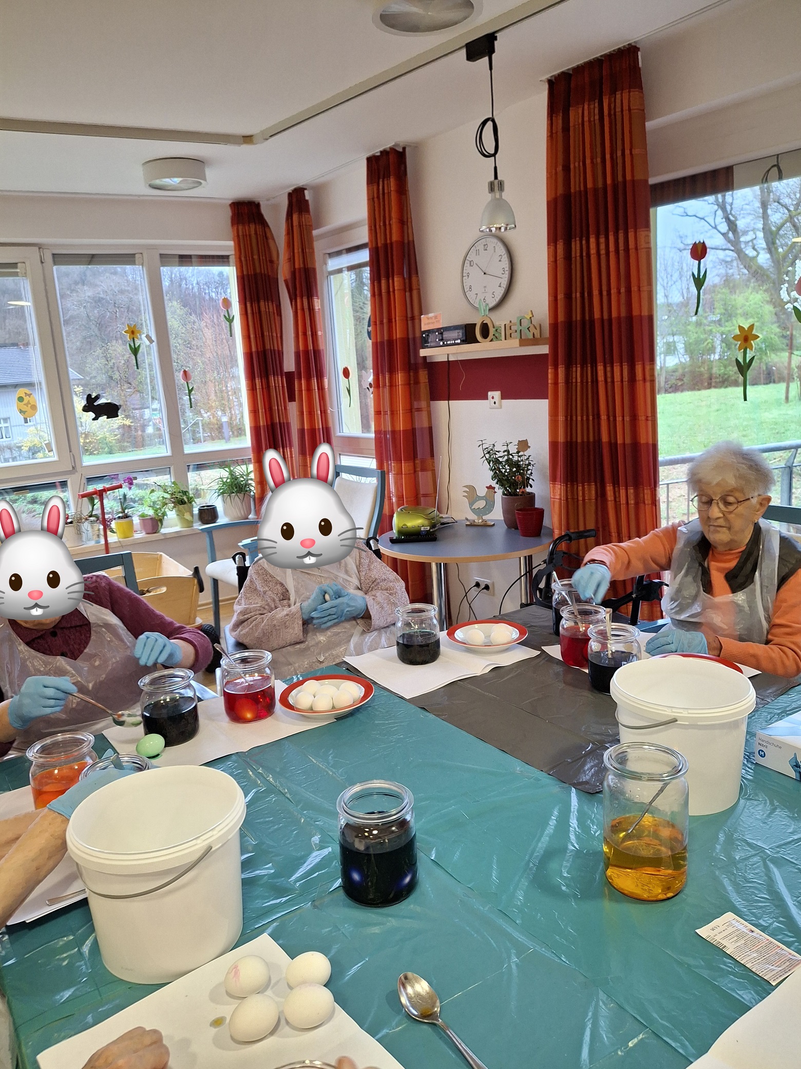 Diese Woche standen die Vorbereitungen für Ostern im Vordergrund. Ob Blumen pflanzen, dekorieren, Eierlikör kochen oder Eier färben, jedes Mal wurde tatkräftig mit angepackt. Wir freuen uns auf ein schönes Osterfest.